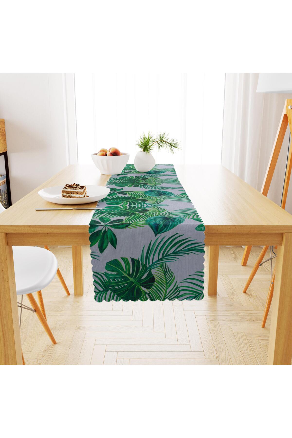 Yaprak Desenli Beyaz Zemin Yeşil Dijital Baskılı Petek Dokuma Runner 40x140