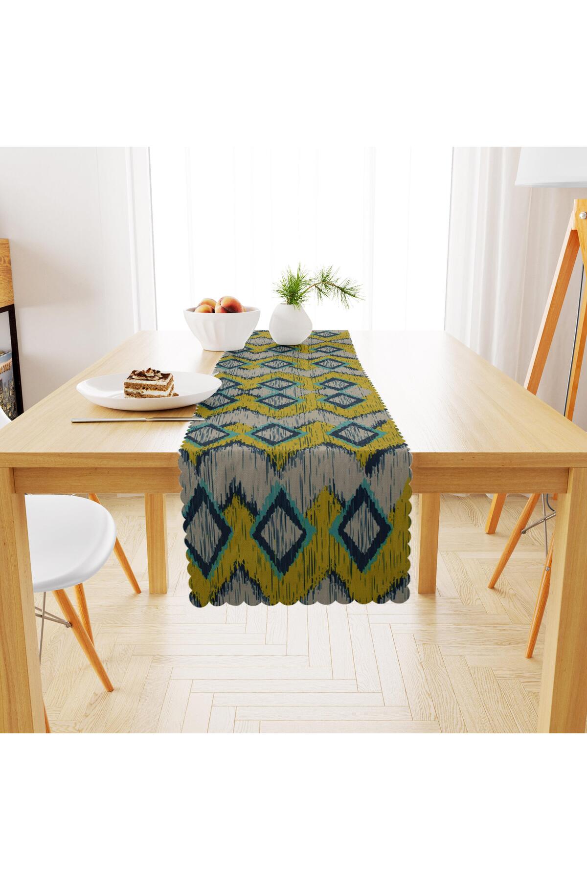 Baklava Desenli Sarı Lacivert Turkuaz Dijital Baskılı Petek Dokuma Runner 40x140