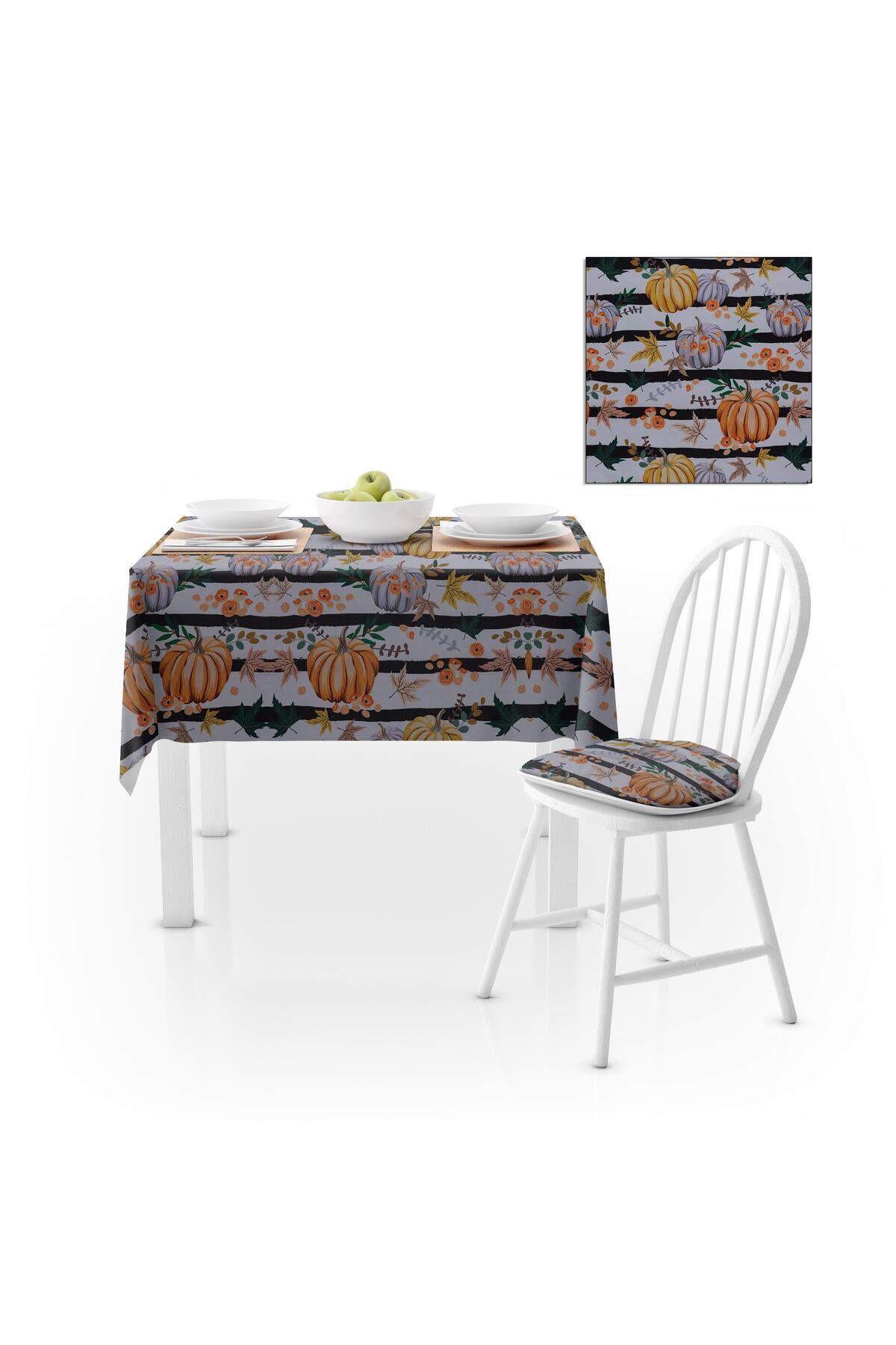 Bal Kabağı Desenli Siyah Çizgili Dijital Baskılı Petek Dokuma Masa Örtüsü 140x180