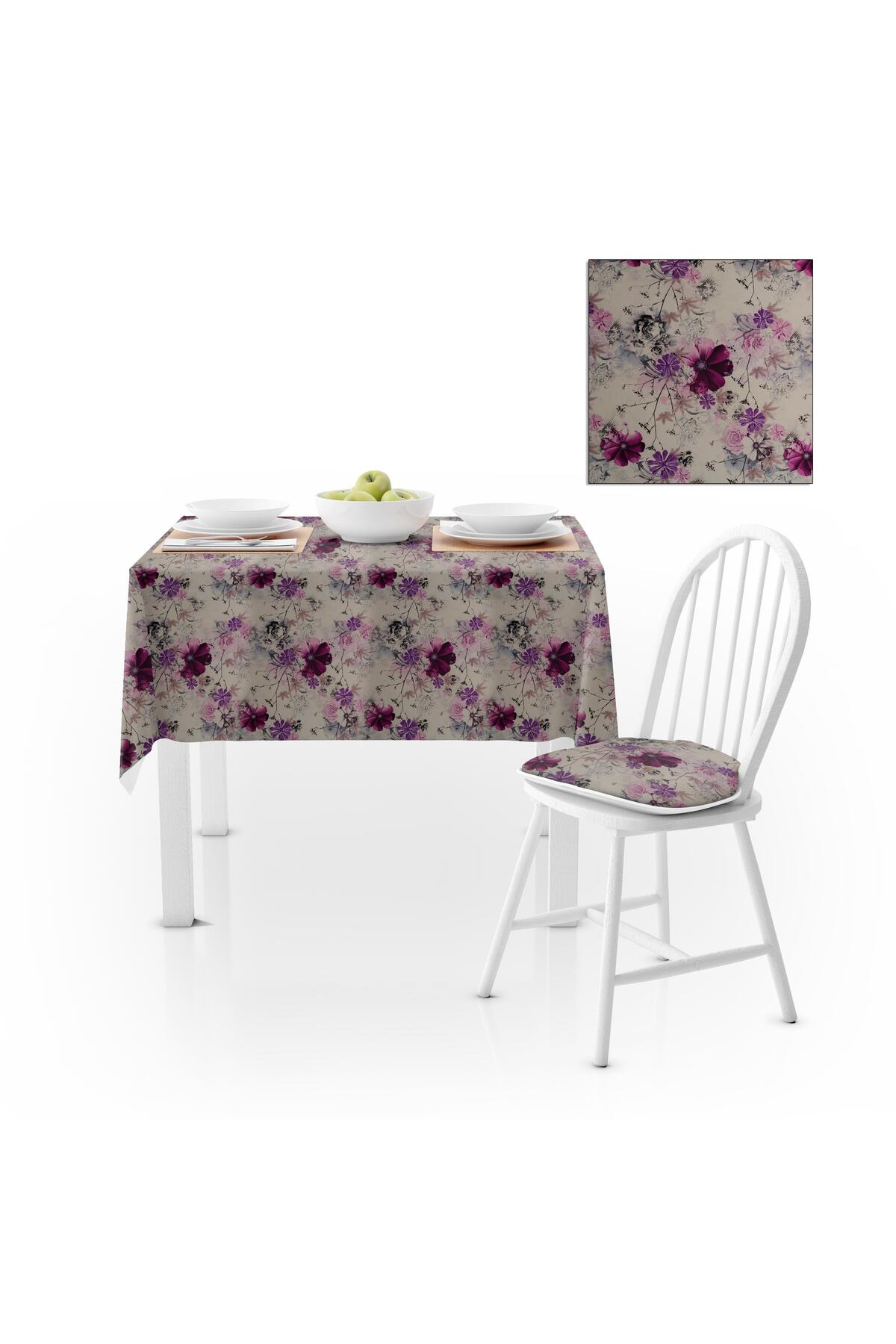 Çiçek Desenli Mor Mürdüm Dijital Baskılı Süet Dokuma Masa Örtüsü 120x140