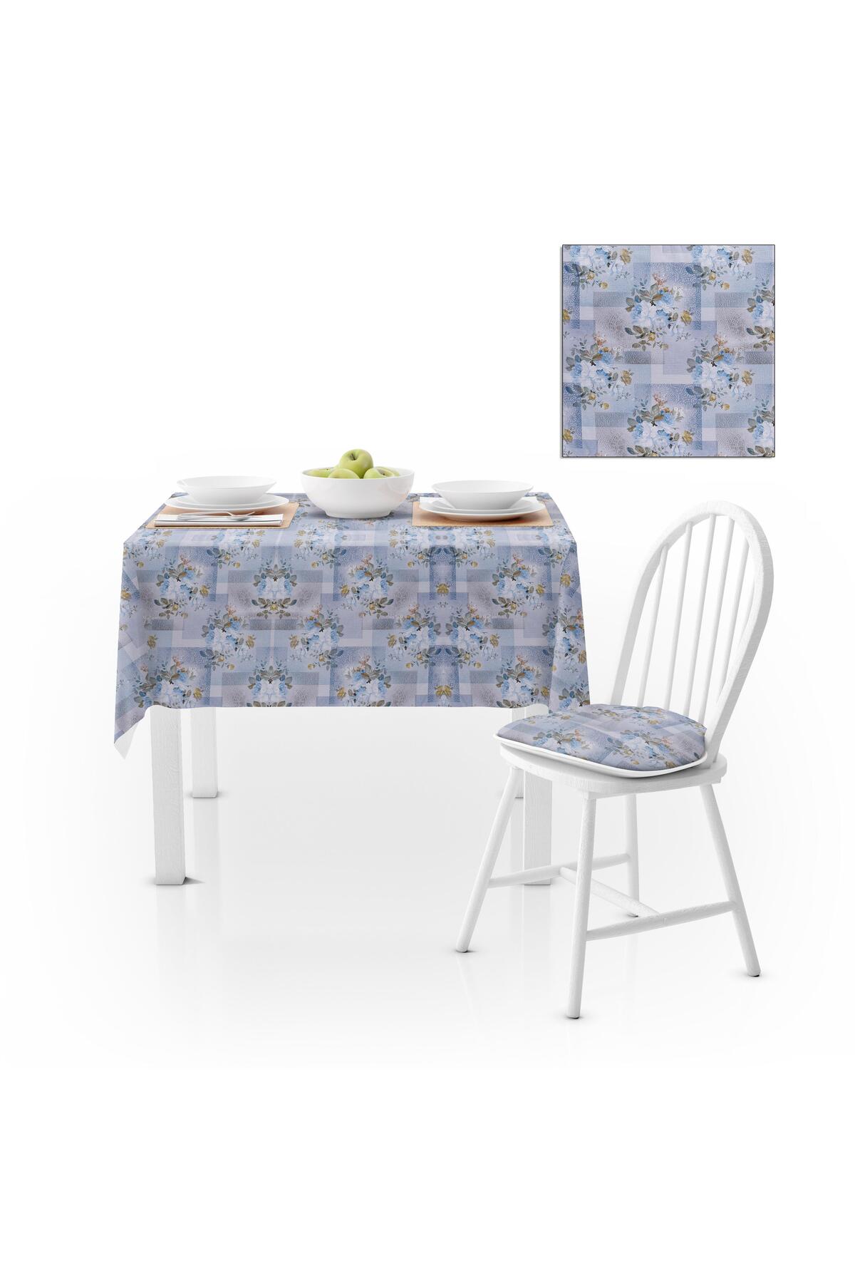 Gül Desenli Mavi Hardal Gri Kadife Dokulu 180X220 Masa Örtüsü