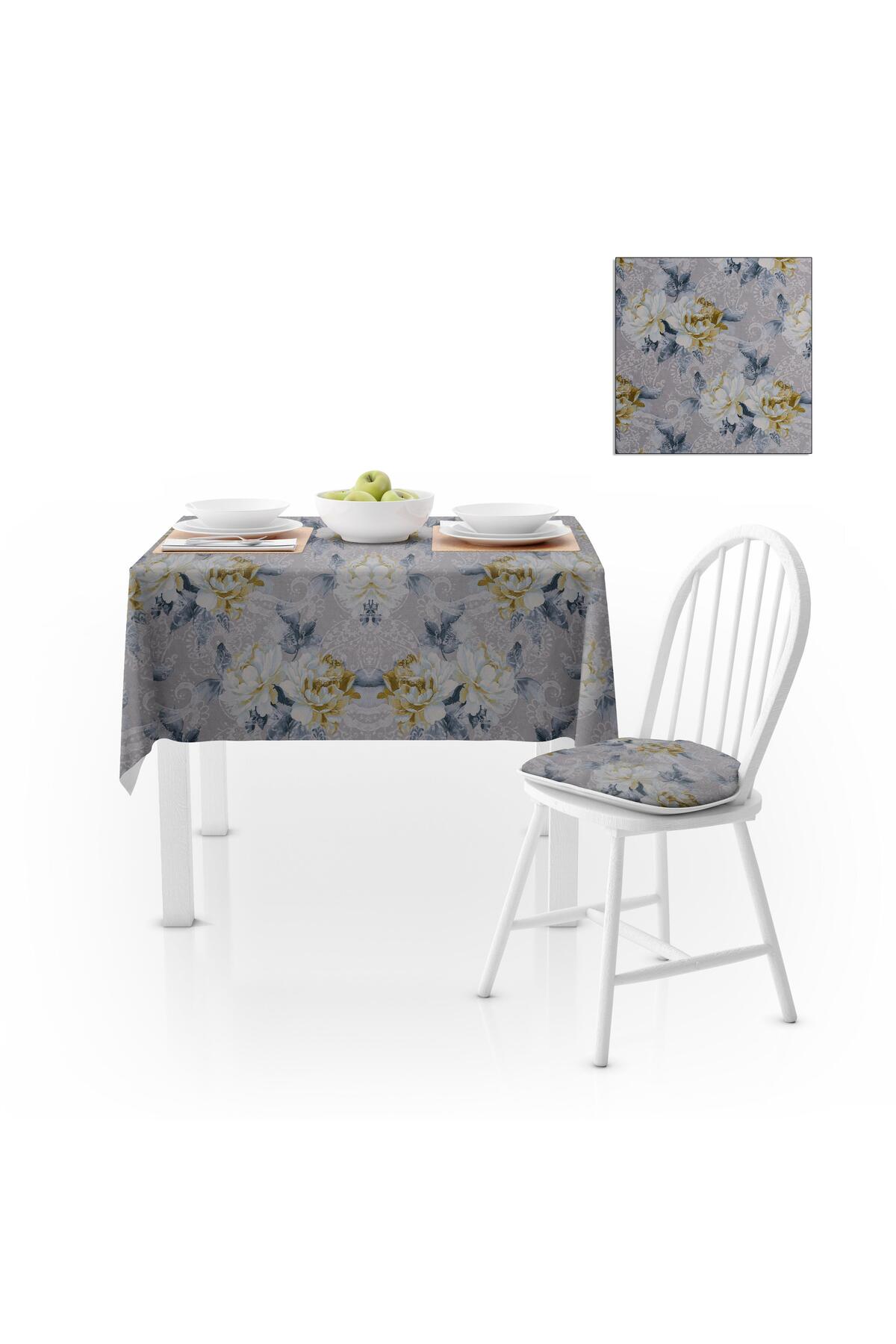 Sarmaşık Desenli Gri Zemin Hardal Krem Dijital Baskılı Petek Dokuma Masa Örtüsü 120x140