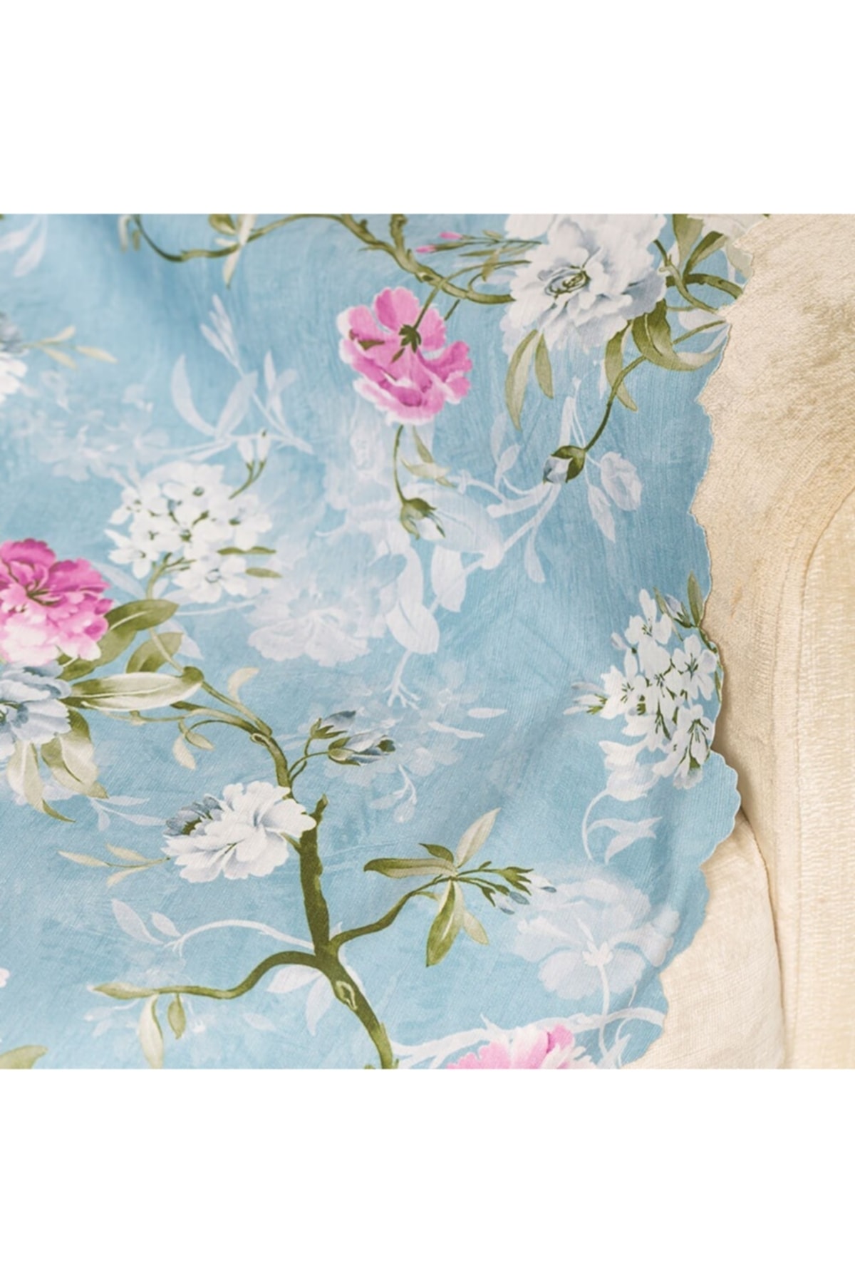 Baskılı Pembe Renki Sarmaşık Çiçek Desenli Dokuma Kadife Dijital Baskılı Standart Koltuk Şalı