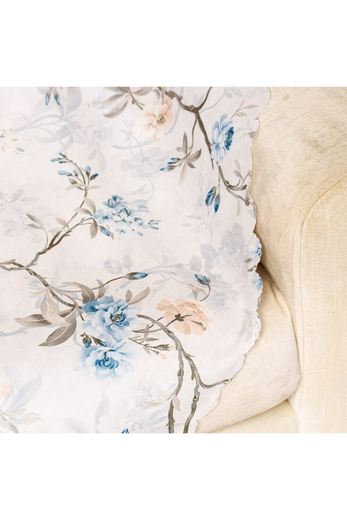 Zemin Üzerine Baskılı Mavi Tarçın Renkli Sarmaşık Çiçekli Dokuma Dijital Baskılı Kadife