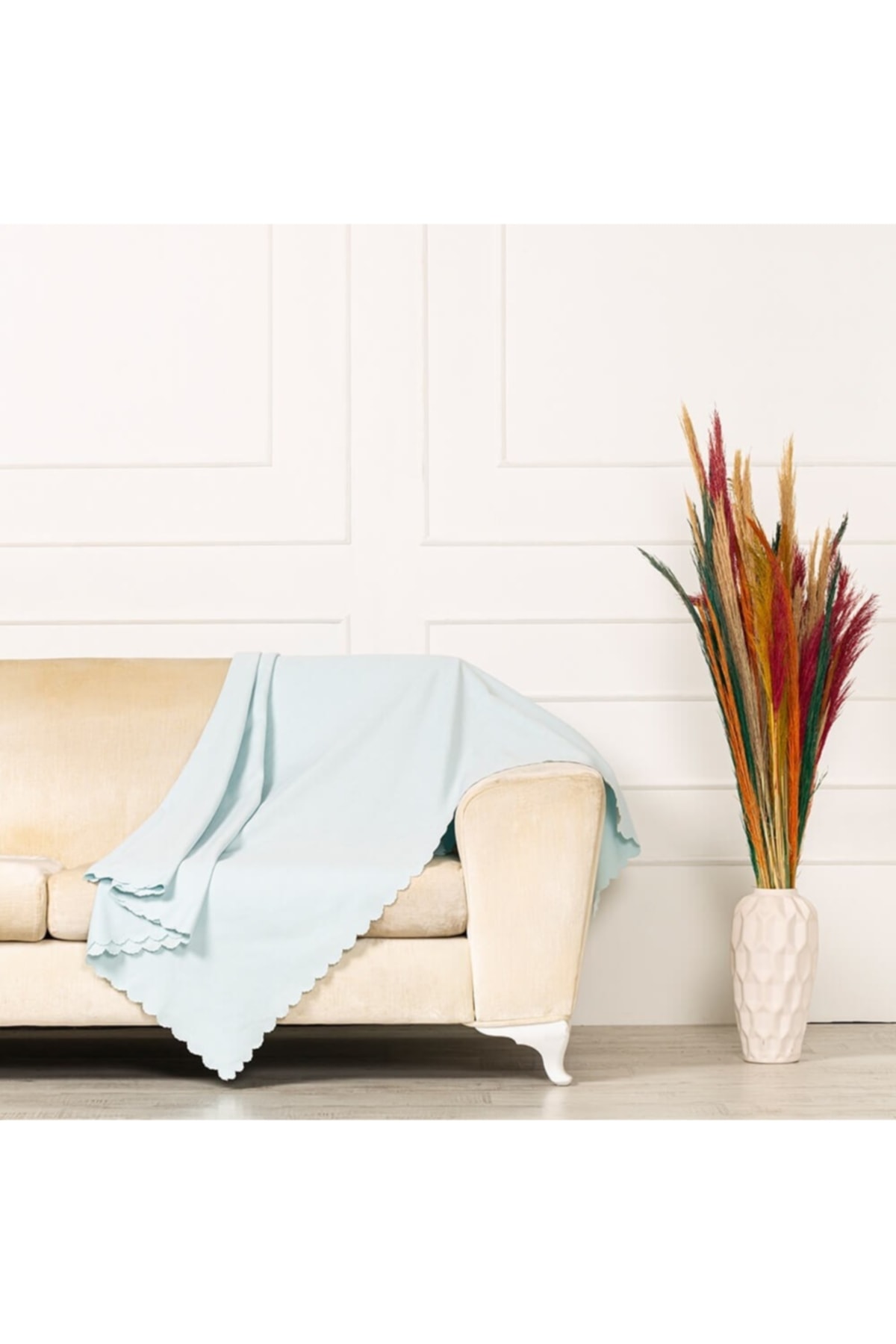 Buz Mavisi Dokuma Kadife Şönil Düz Kumaş Çift Taraflı Standart Koltuk Şalı