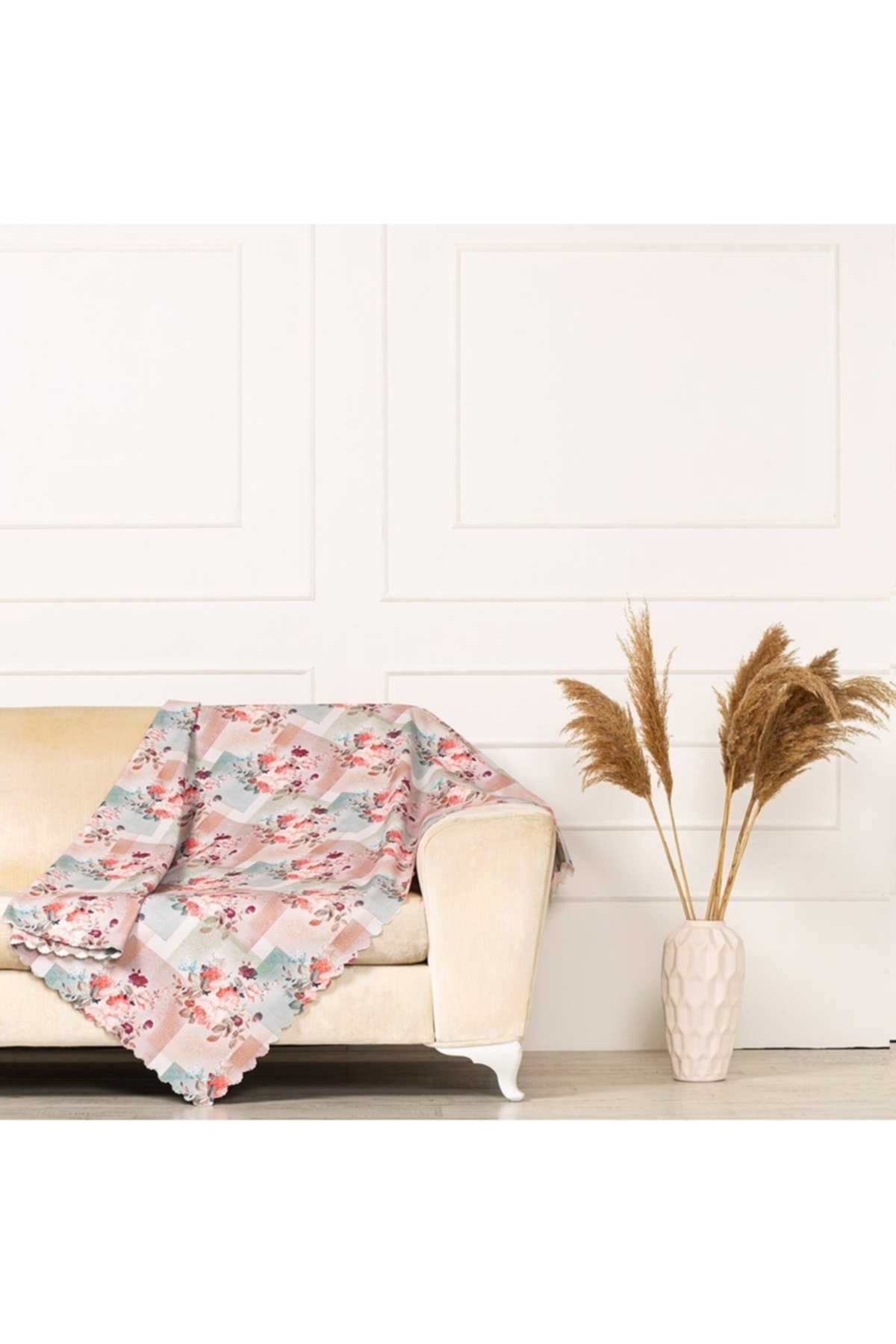 Mavi Gül Kurusu Renkli Zemin Motifli Güller Dokuma Kadife Dijital Baskılı Standart Koltuk Şalı