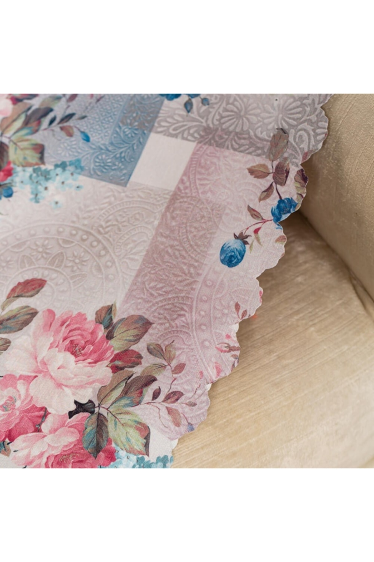 Zemin Motifli Kırmızı Çiçekli Dokuma Kadife Dijital Baskılı Standart Koltuk Şalı