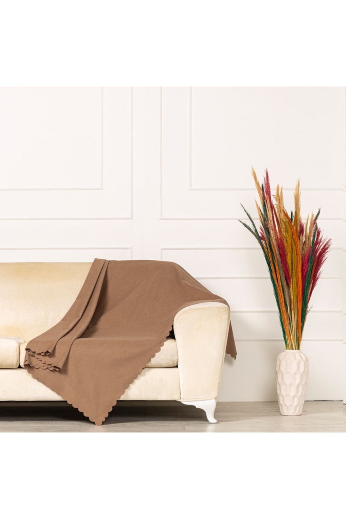 Çikolata Dokuma Kadife Şönil Düz Kumaş Çift Taraflı Standart Koltuk Şalı