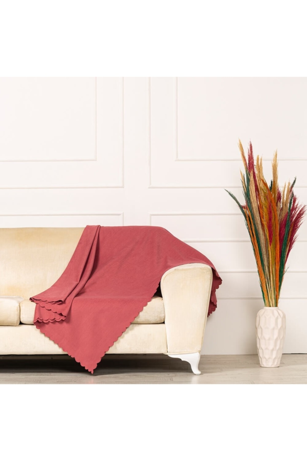 Gül Rengi Dokuma Kadife Şönil Düz Kumaş Çift Taraflı Koltuk Şalı Örtüsü Maxi Set (3+3+1+1)