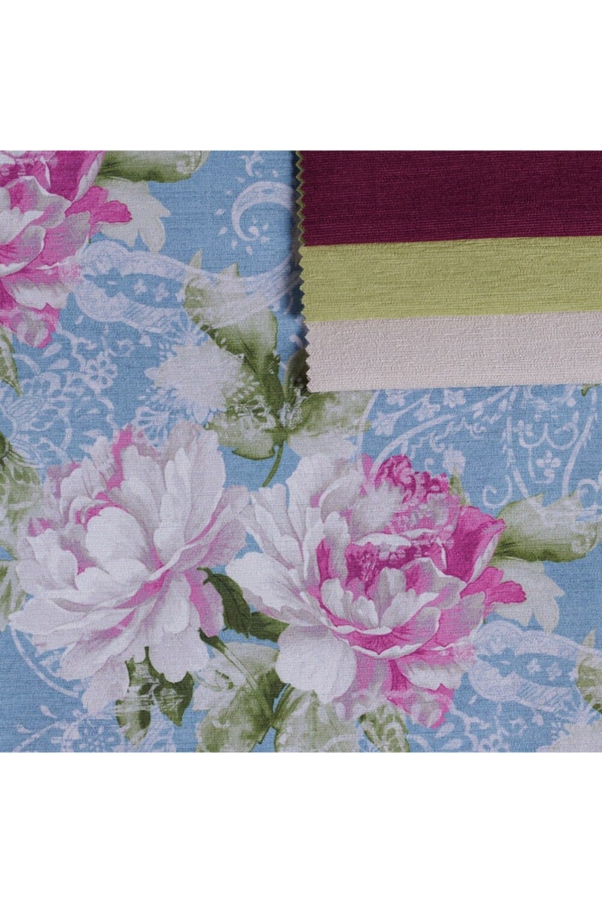 Mint Zeminli Kiremit Yeşil Renkli Sarmaşık Gül Desenli Dokuma Dijital Baskılı Kadife Şönil