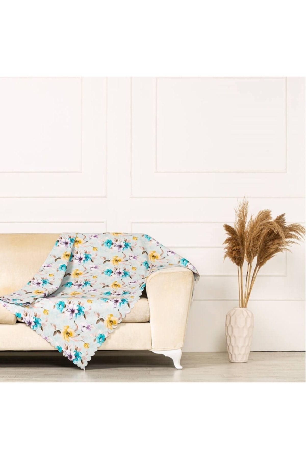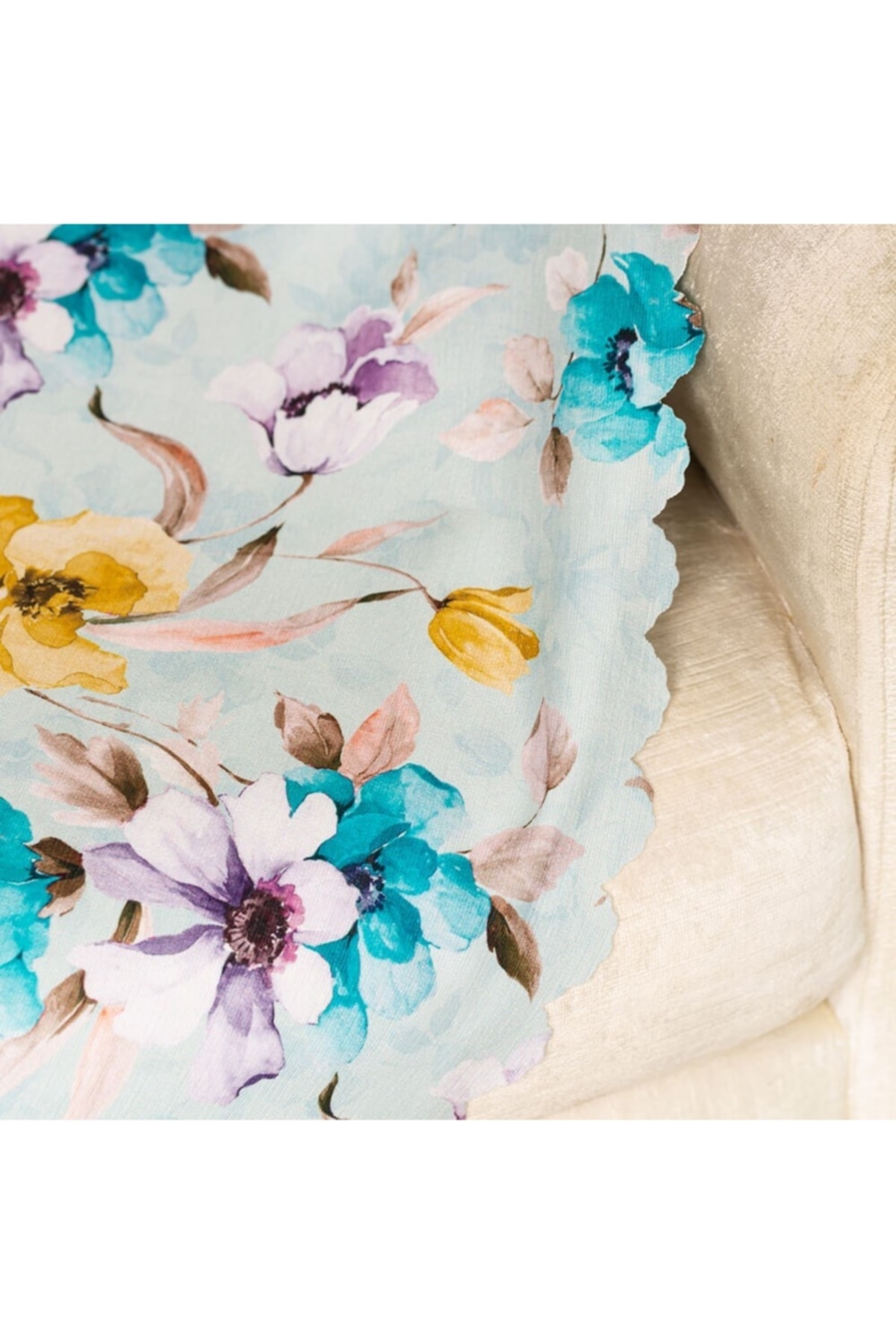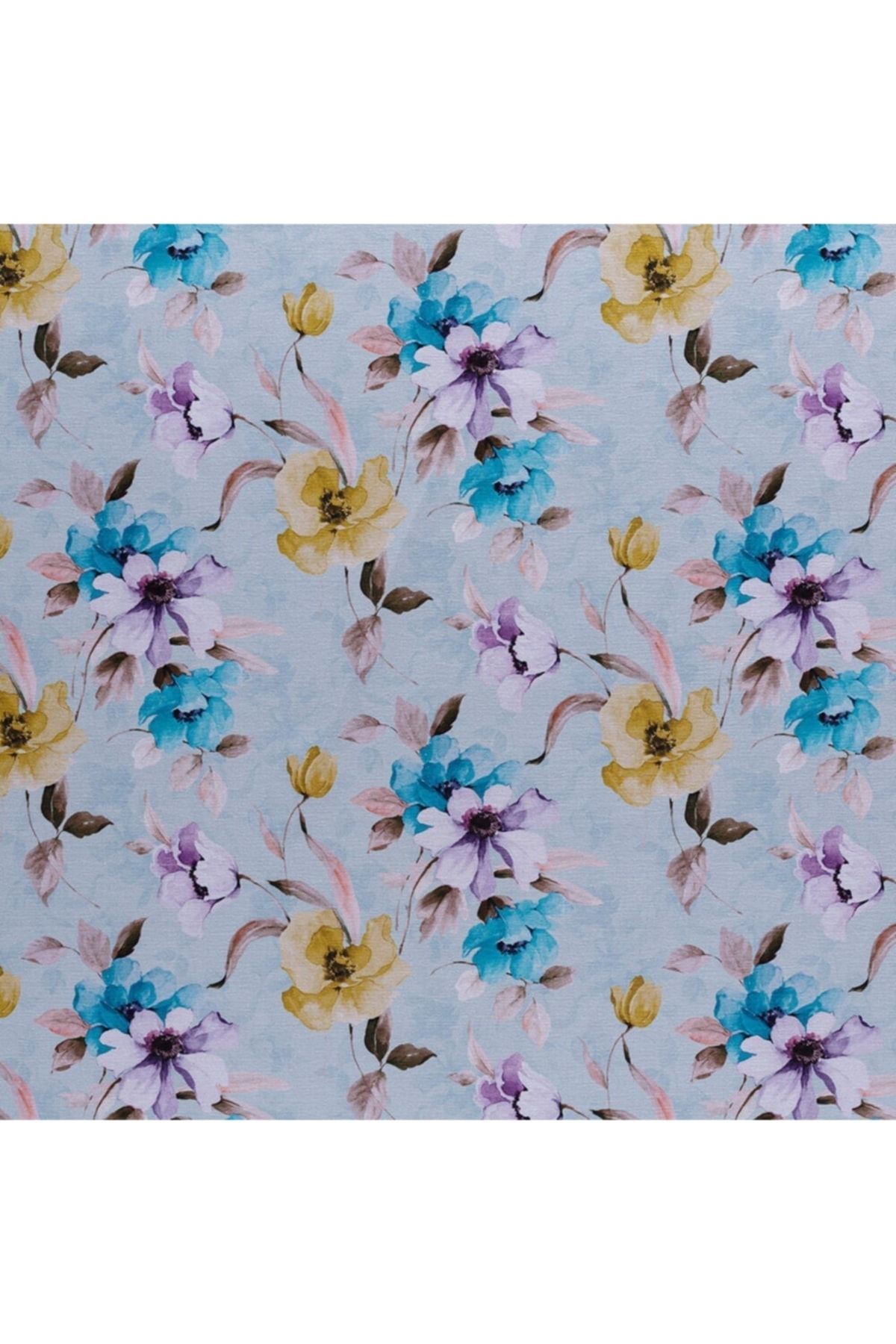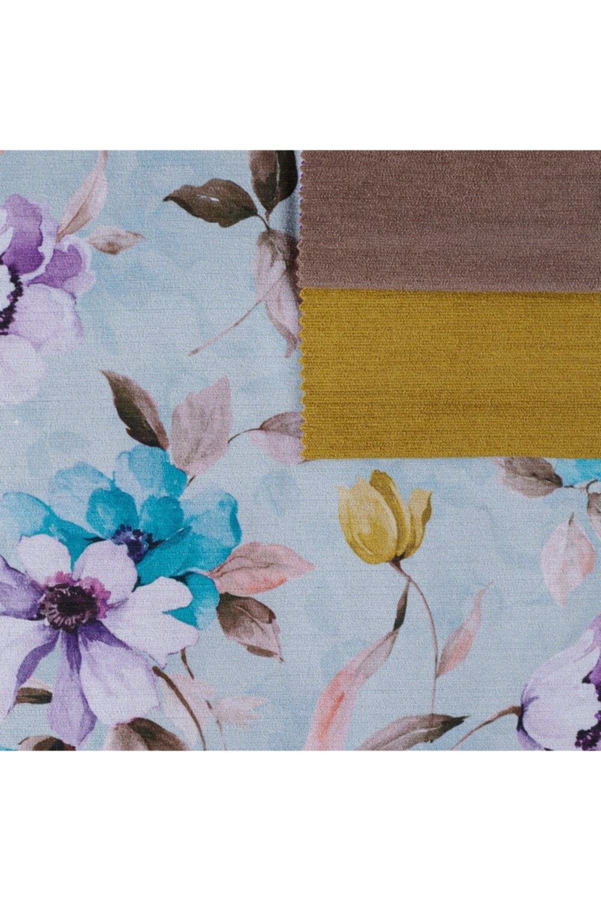 Hardal Mavi Renkli Modern Çiçekli Desen Dokuma Dijital Baskılı Kadife Şönil