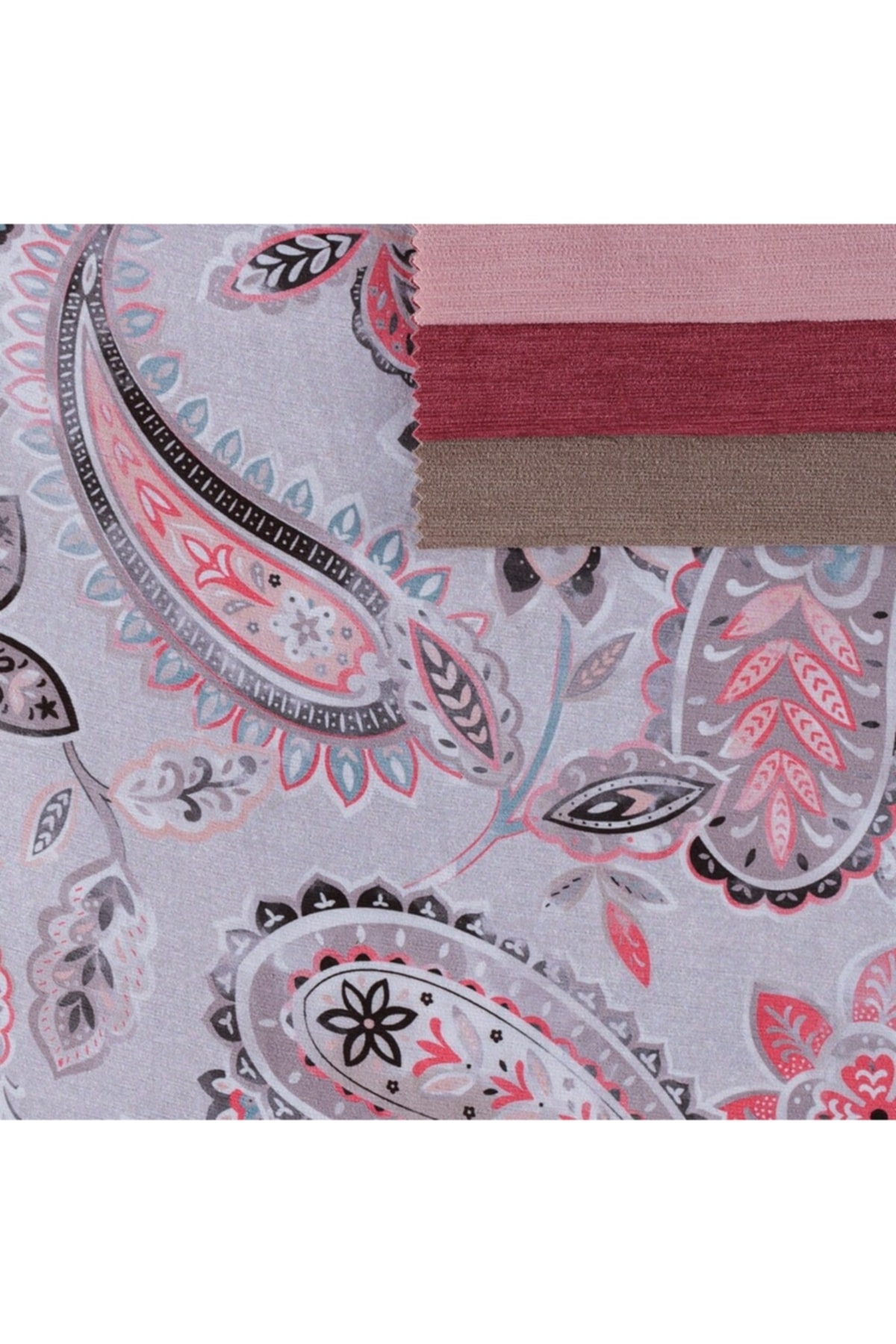 Gri Zemin Üzerine Baskılı Şal Desen Dokuma Dijital Baskılı Kadife Şönil