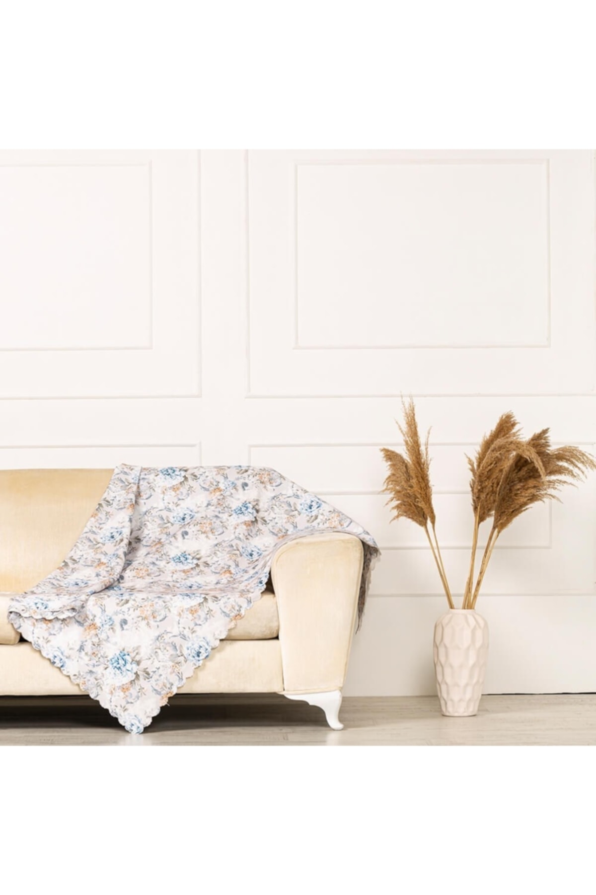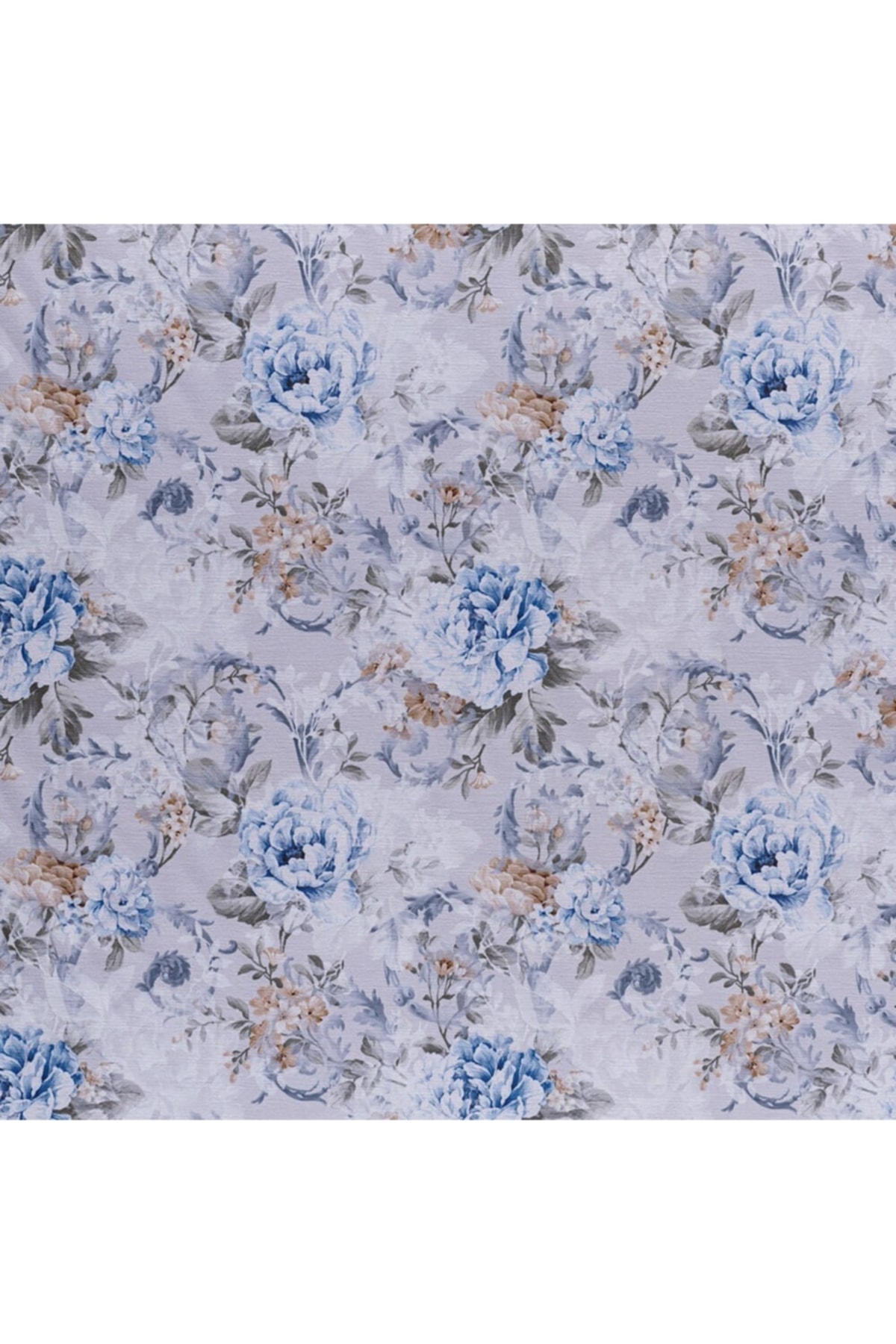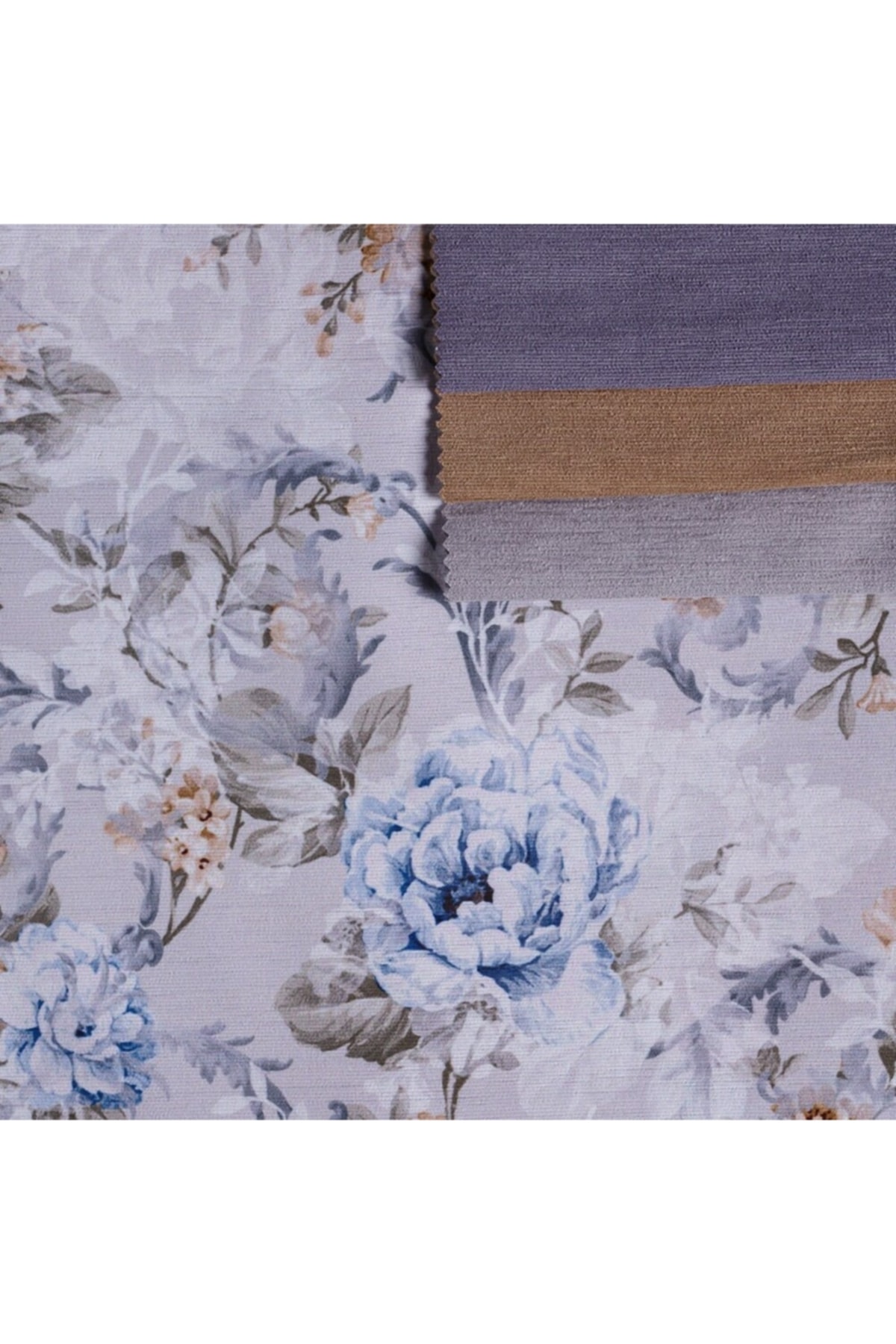 Mavi Sütlü Kahve Renkli Gül Desen Dokuma Dijital Baskılı Kadife Şönil