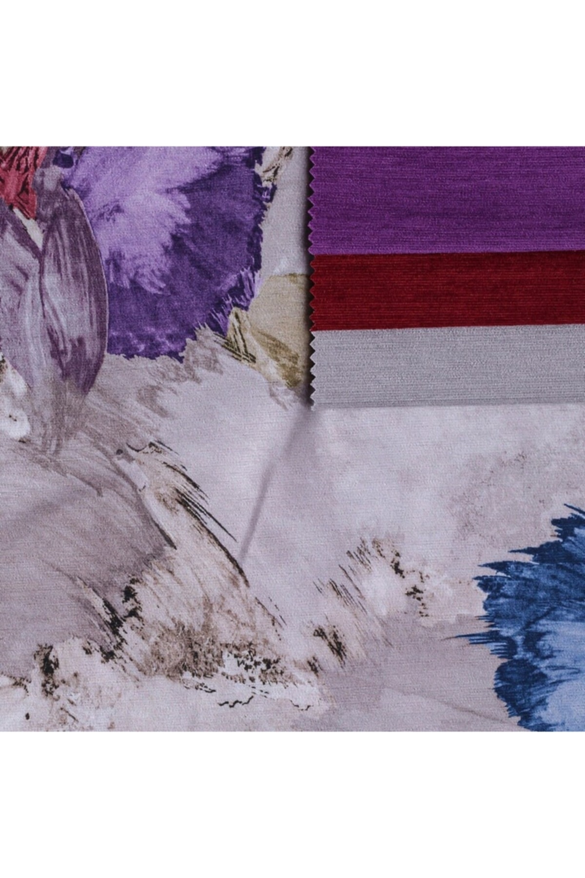 Bordo Mor Renkli Fırça Desen Dokuma Dijital Baskılı Kadife Şönil