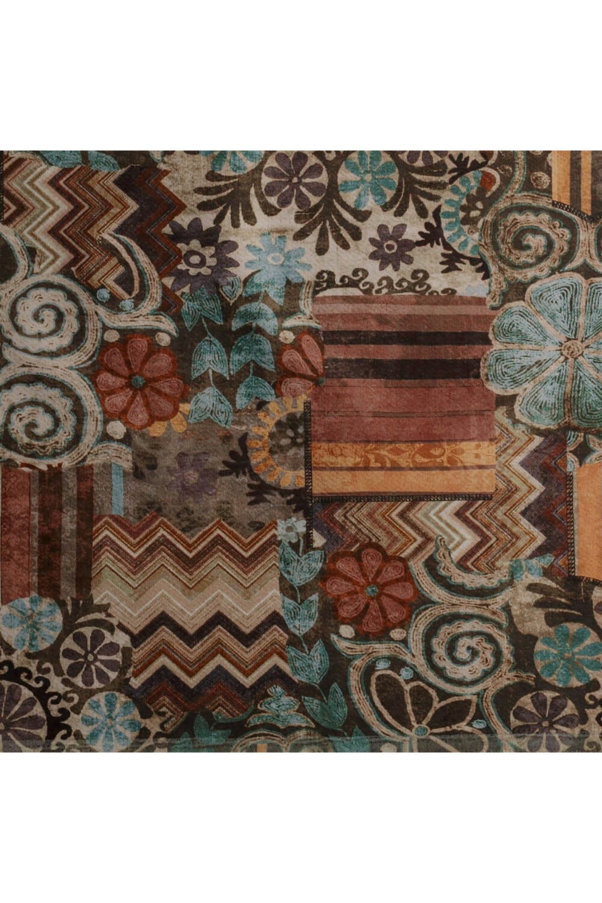 Kahve Çikolata Renkli Geometrik Desen Dijital Baskılı Süet Kumaş