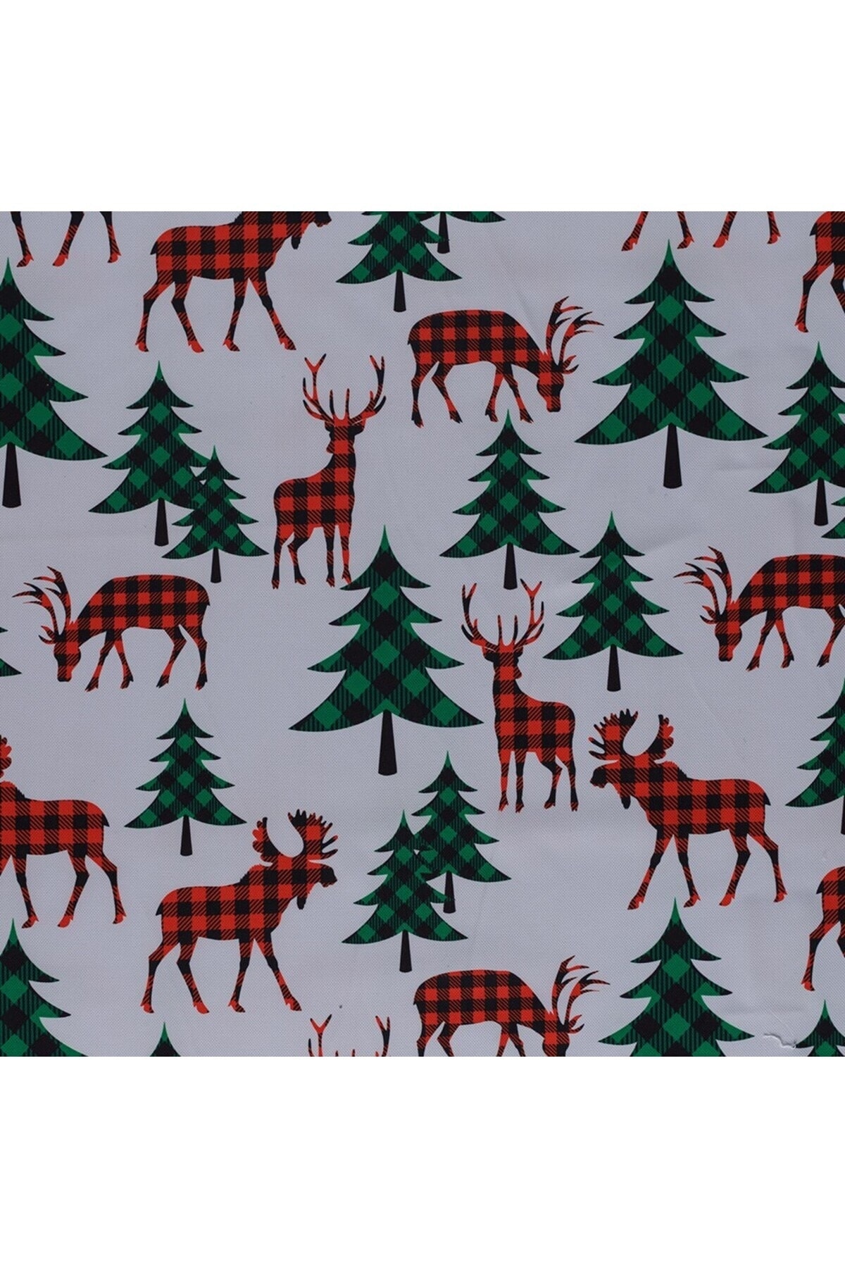 Beyaz Zemin Üzerine Baskılı Yılbası Agacı Geyik Desen Dokuma Dijital Baskılı Petek Kumaş
