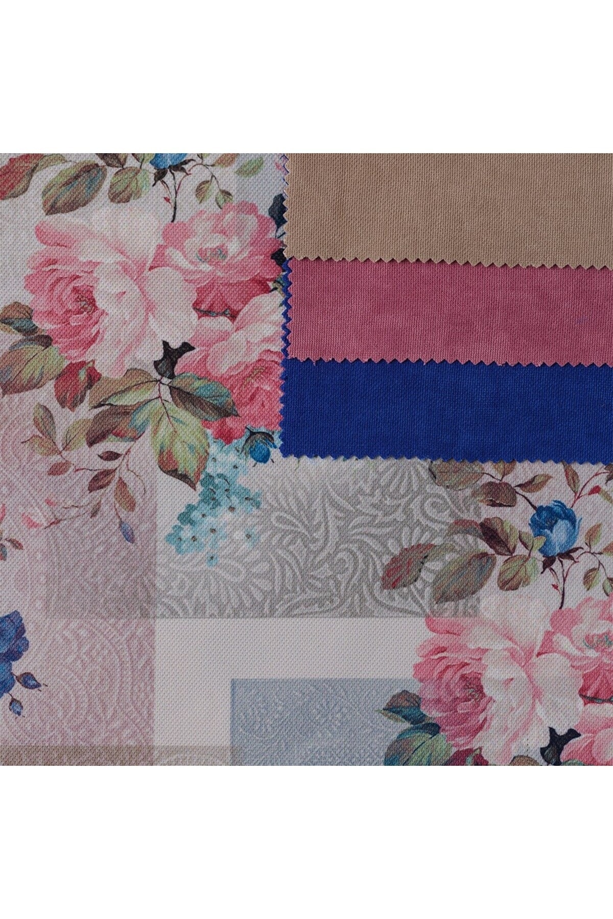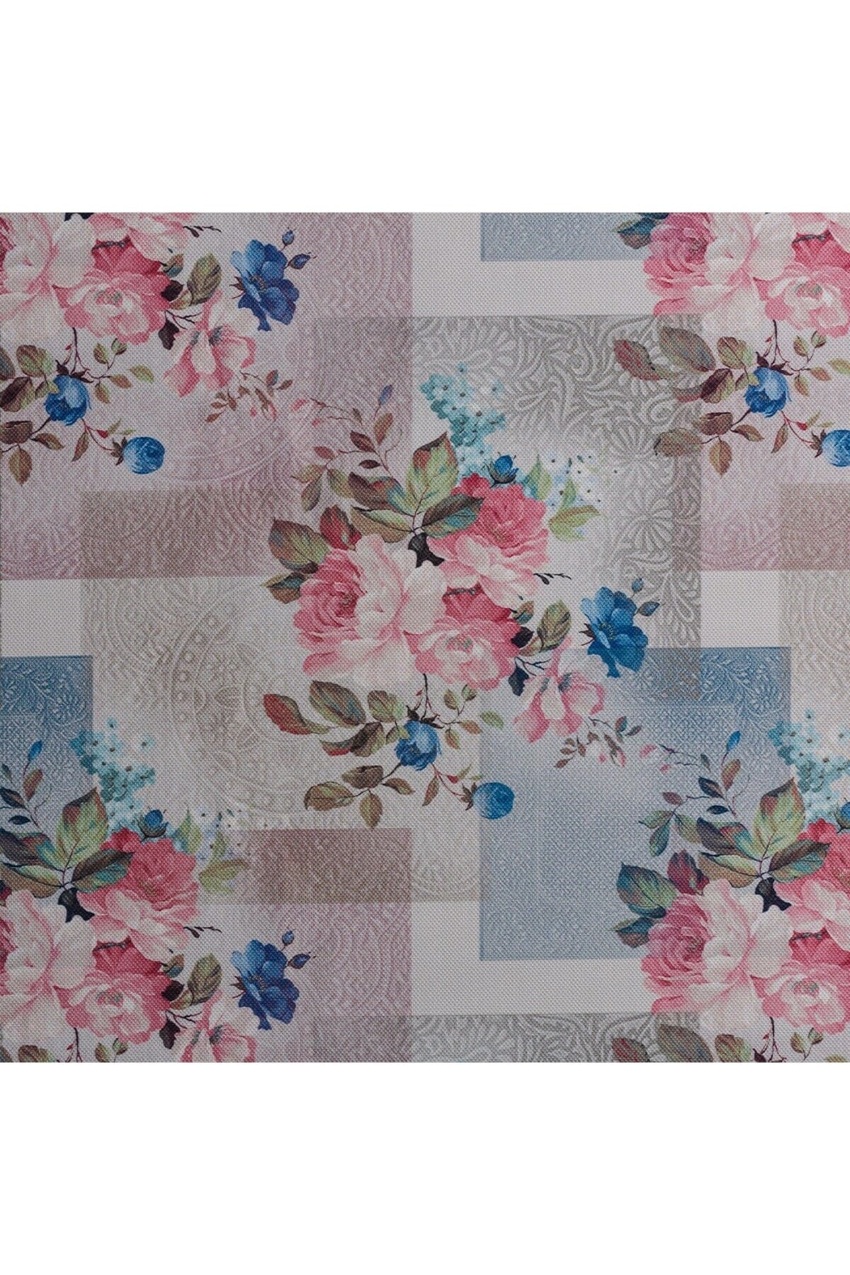 Mavi Gül Kurusu Renkli Zemin Motifli Güller Dokuma Dijital Baskılı Petek Kumaş