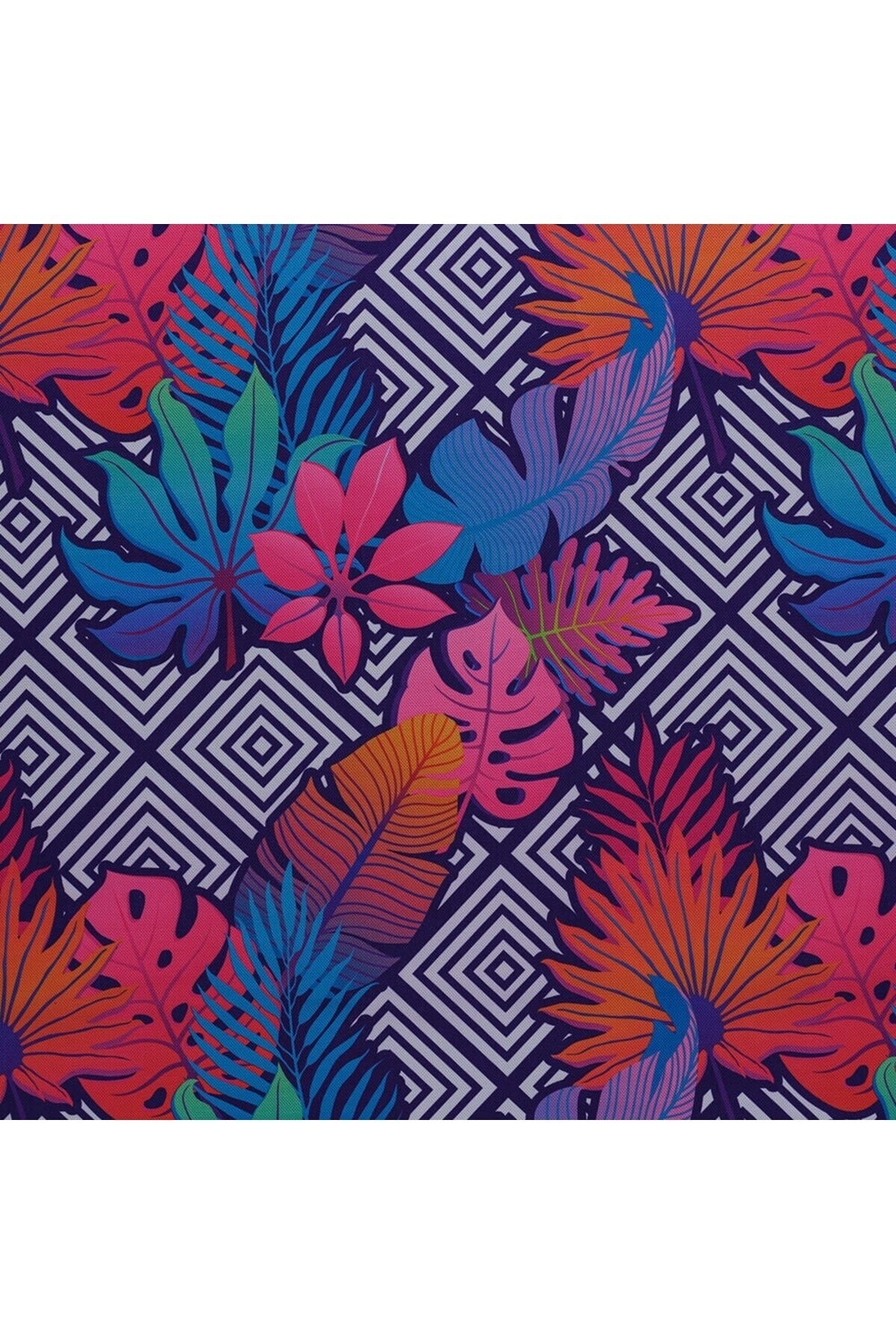 Dekoratif Geometrik Zemin Renkli Yaprak Desen Dokuma Dijital Baskılı Petek Kumaş