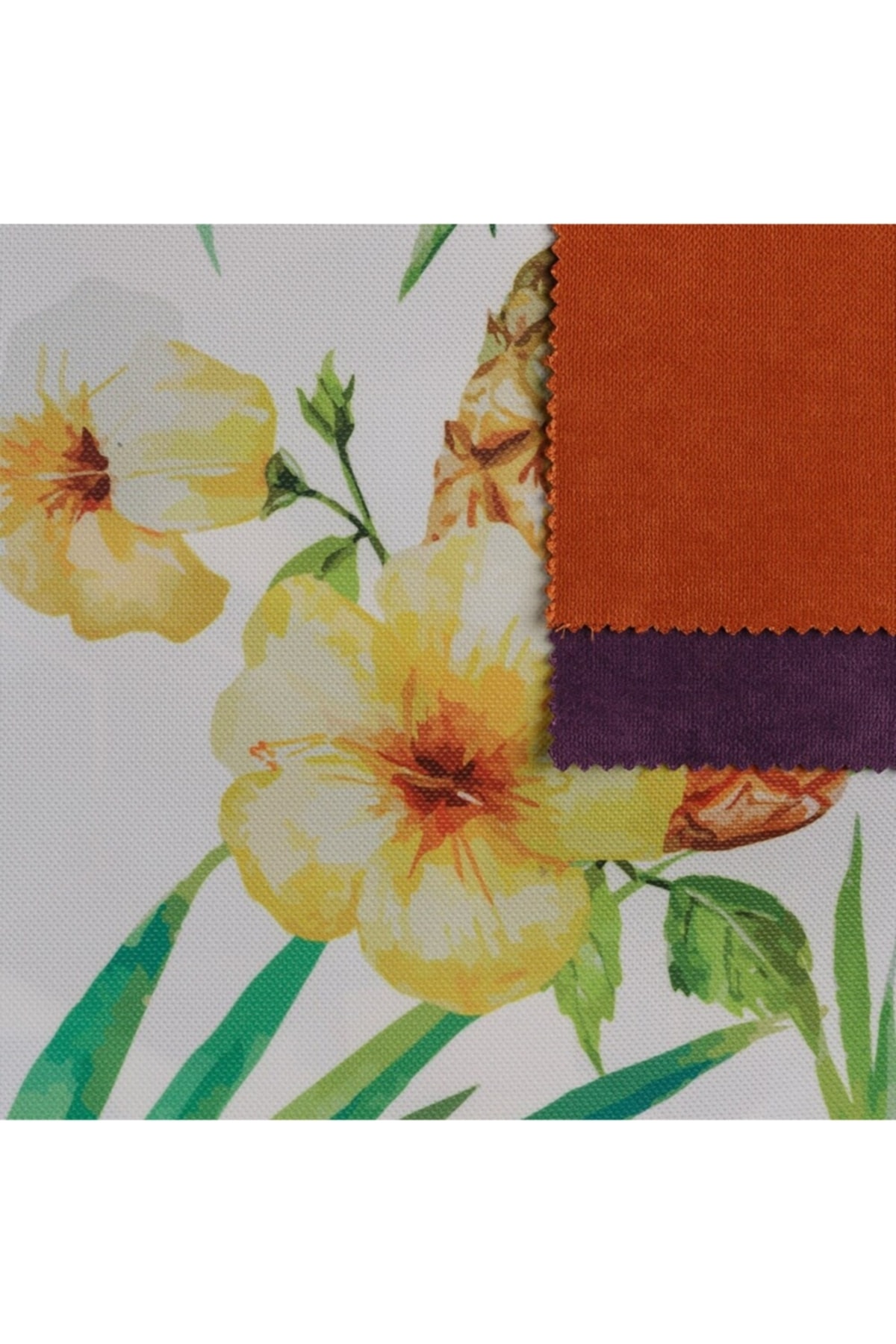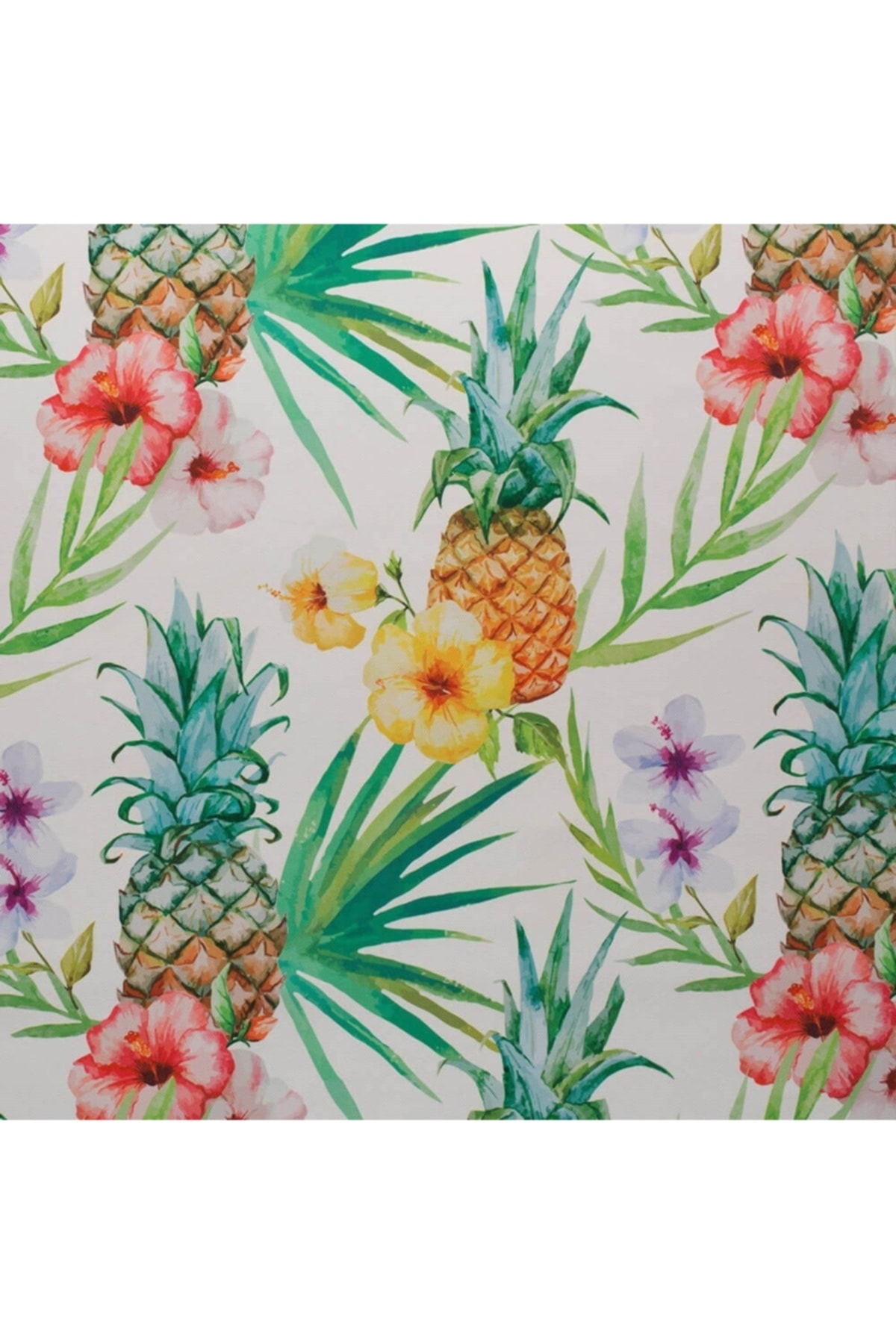 Beyaz Zemin Üzerine Tropikal Sarı Pembe Çiçekli Ananas Desenli Dokuma Dijital Baskılı Petek Kumaş