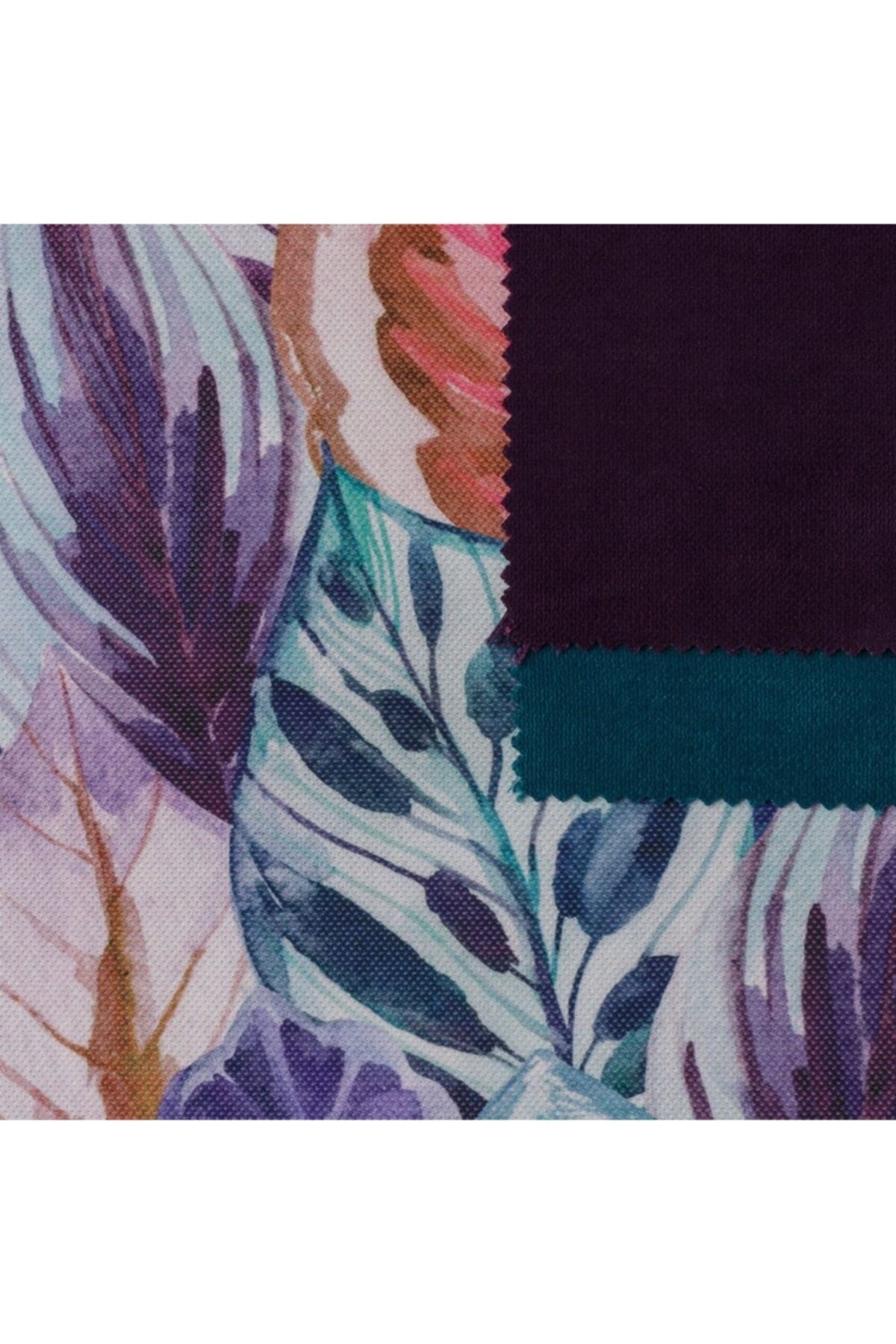 Mor Yeşil Renkli Sıralı Yapraklar Dokuma Dijital Baskılı Petek Kumaş