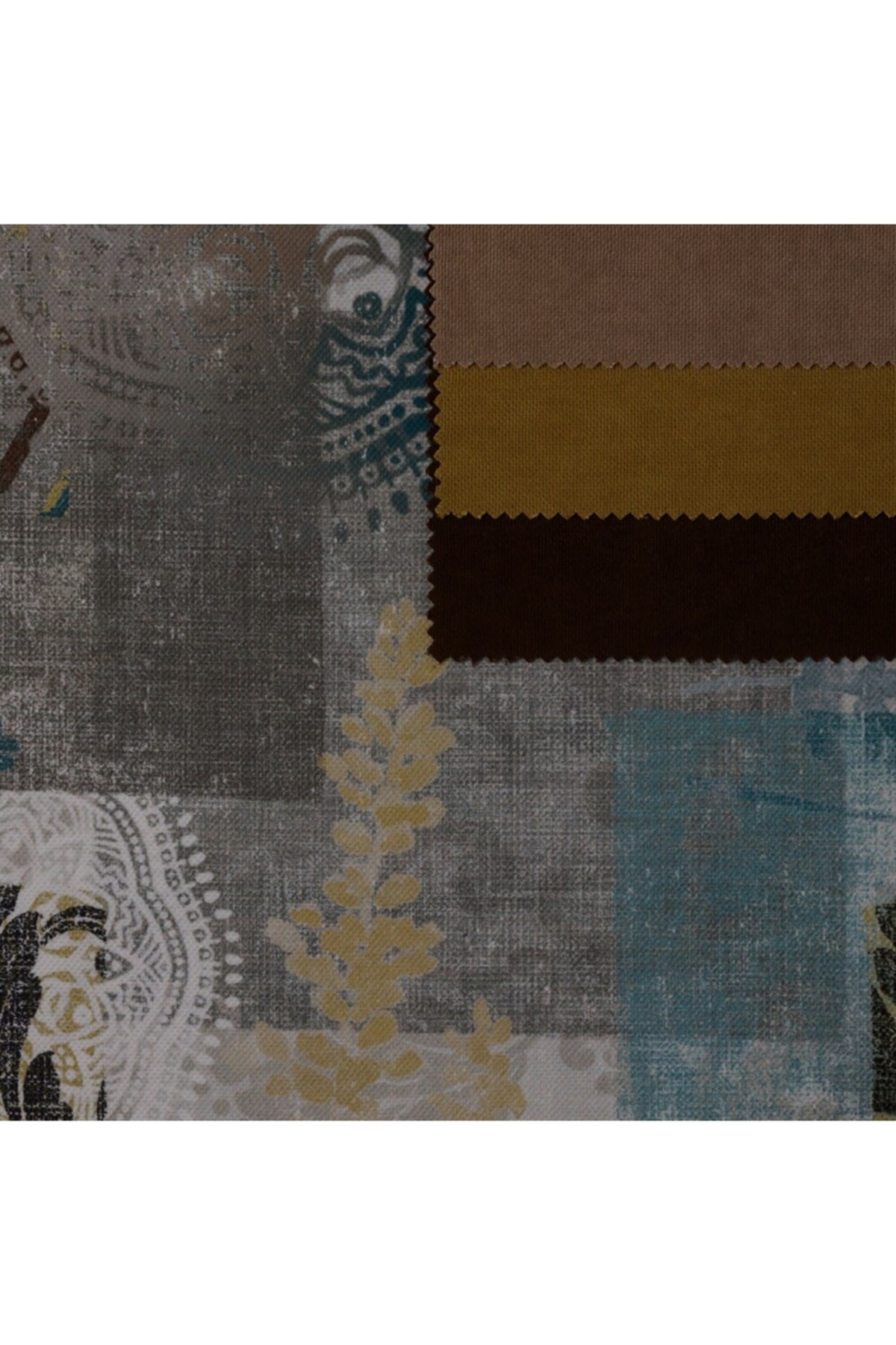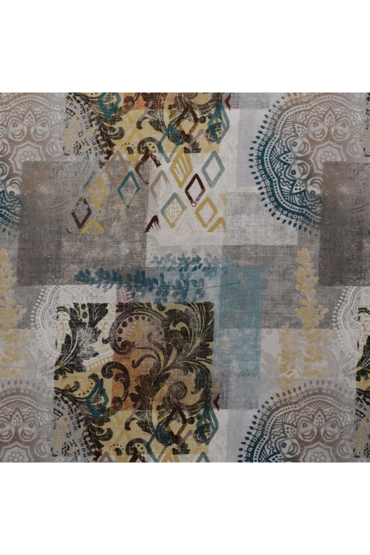 Hardal Vizon Renkli Pachworkgeometrik Desenli Dokuma Dijital Baskılı Petek Kumaş