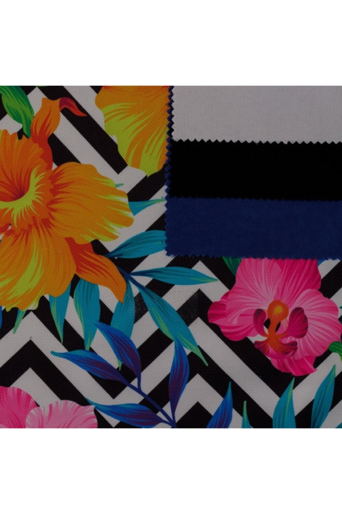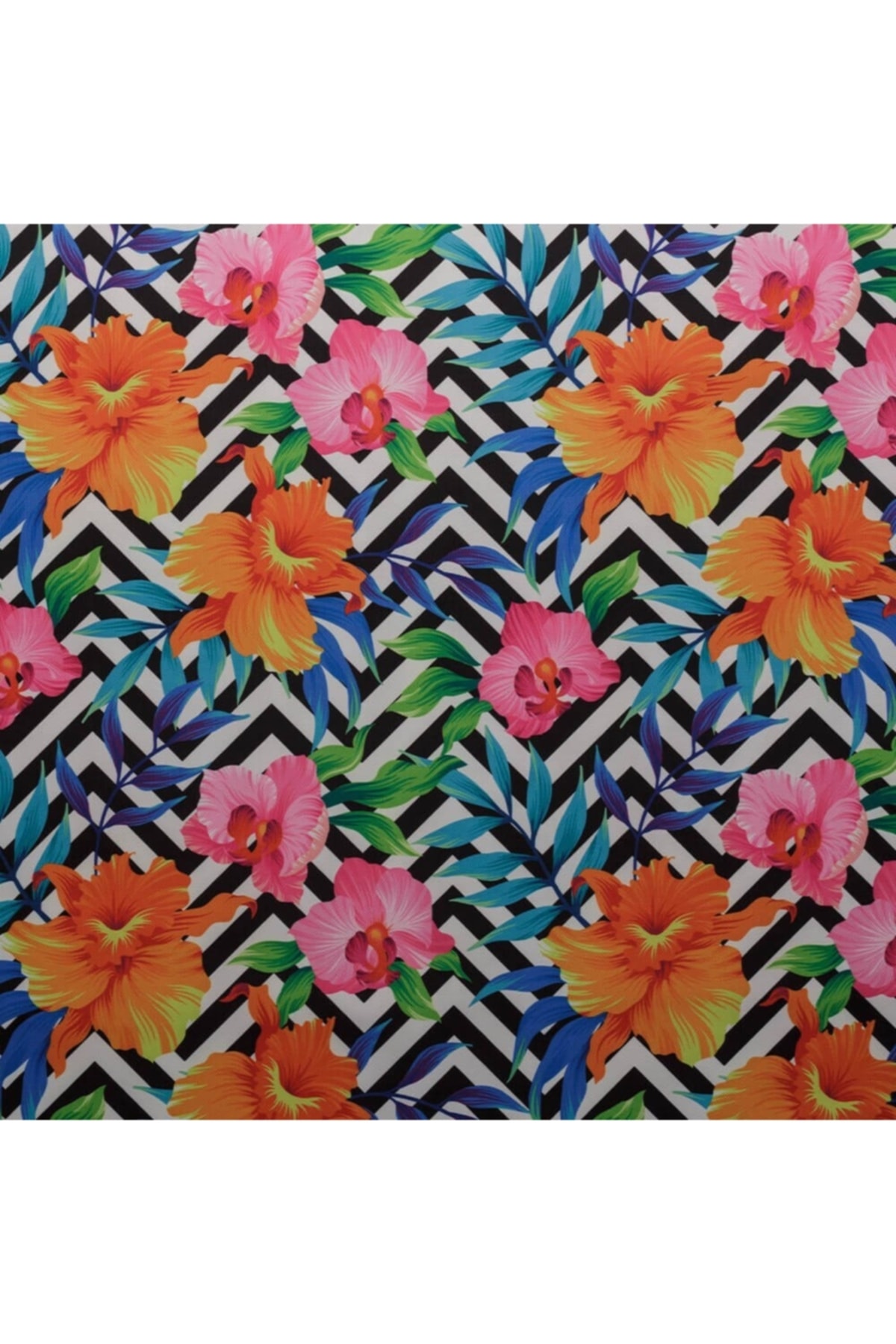 Siyah Beyaz Zigzag Zemin Üzerine Pembe Turuncu Dokuma Dijital Baskılı Petek Kumaş