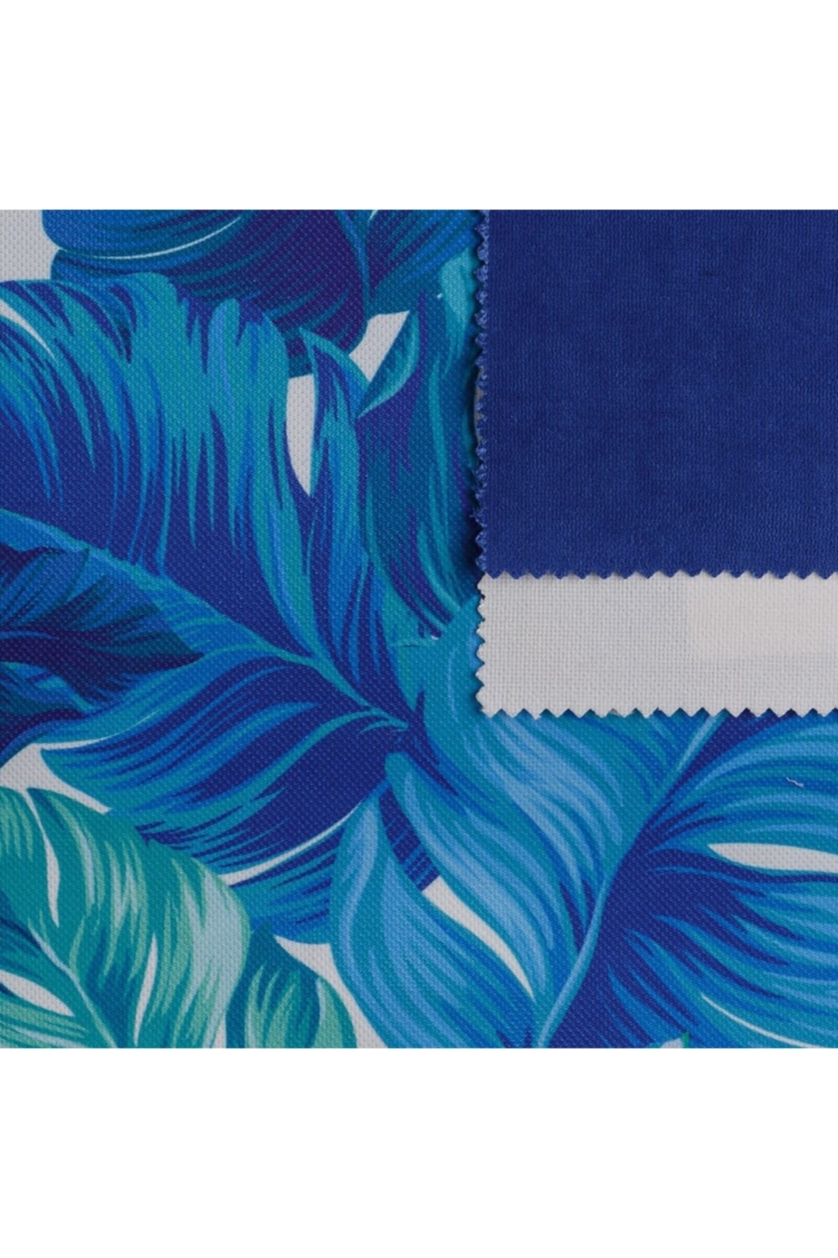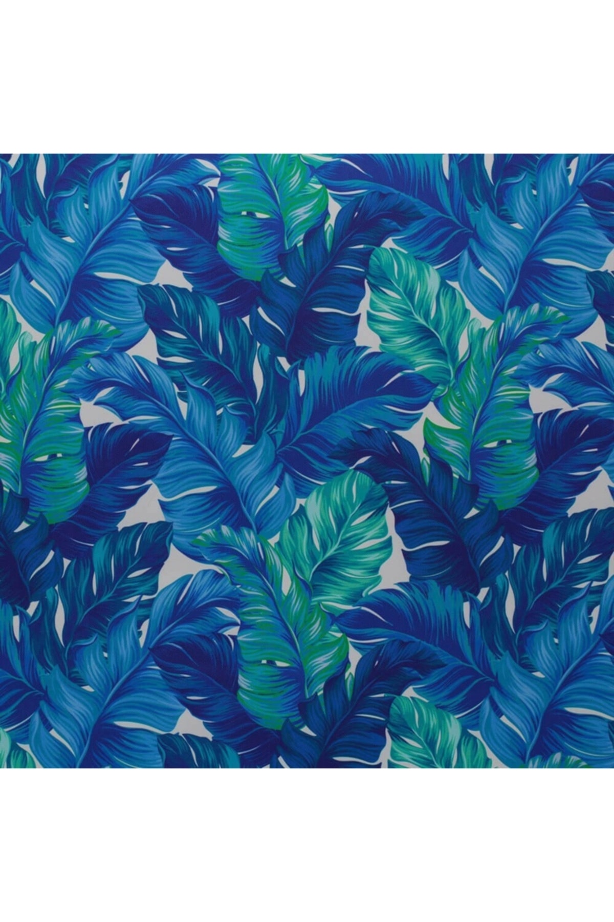 Beyaz Zemin Üzerine Mavi Yapraklı Dokuma Dijital Baskılı Petek Kumaş