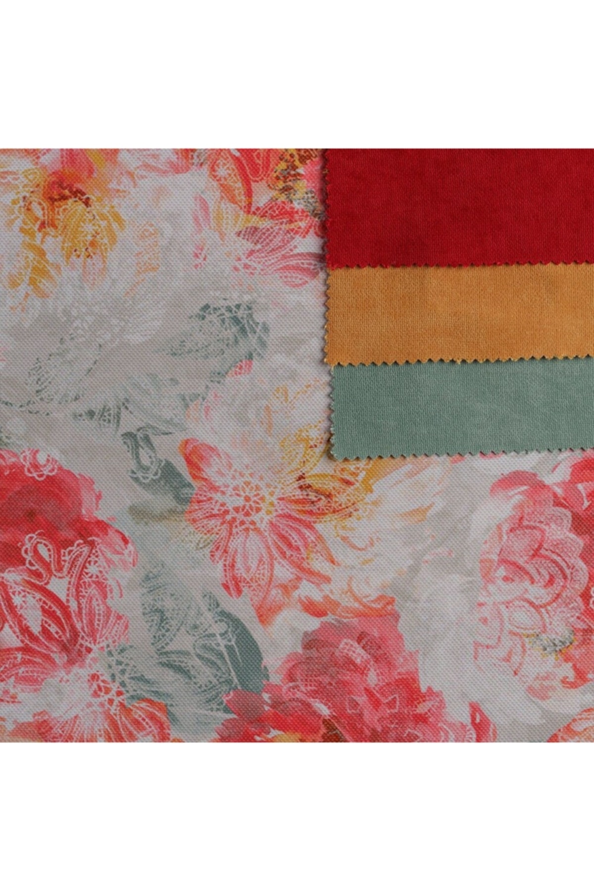 Kırmızı Kavun Içi Gül Desen Dokuma Dijital Baskılı Petek Kumaş