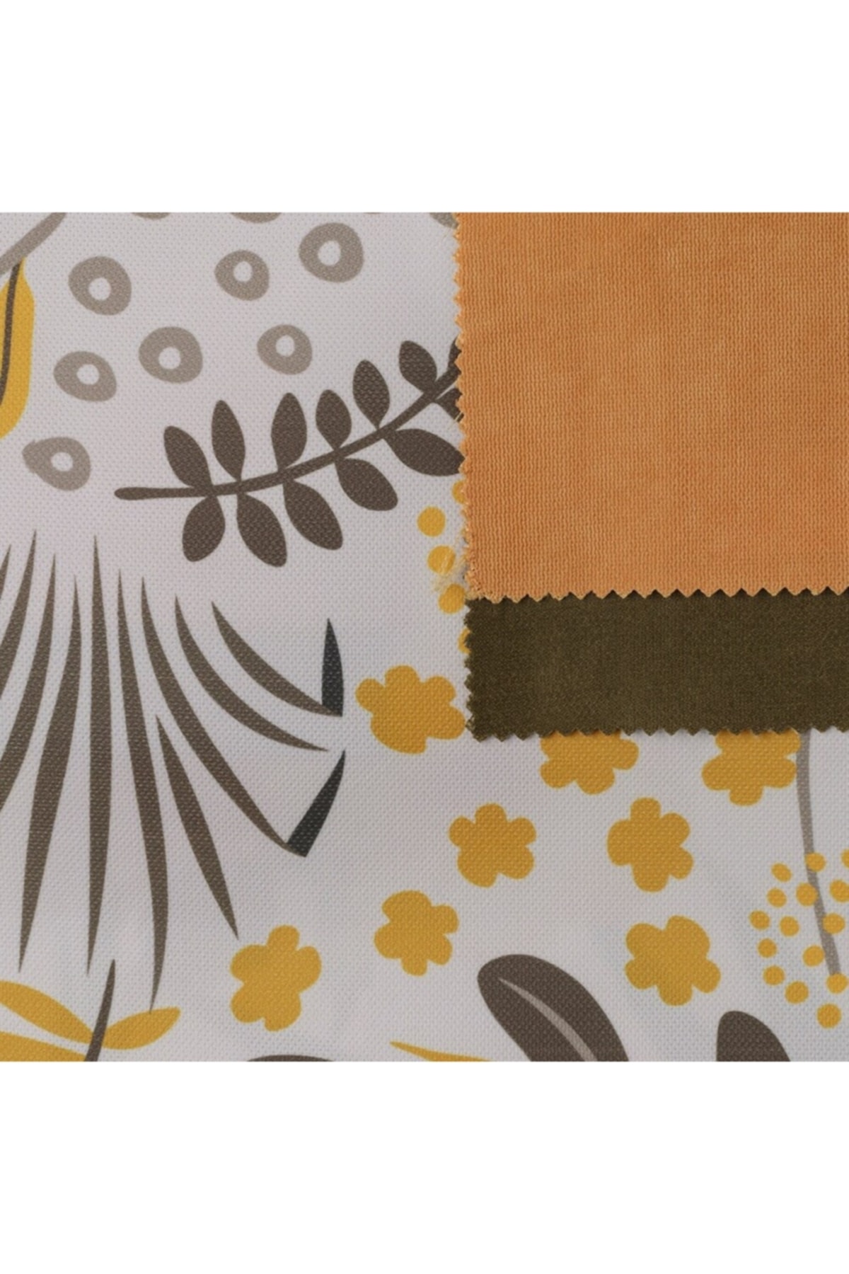 Sarı Gri Modern Zeytin Dalı Desen Dokuma Dijital Baskılı Petek Kumaş
