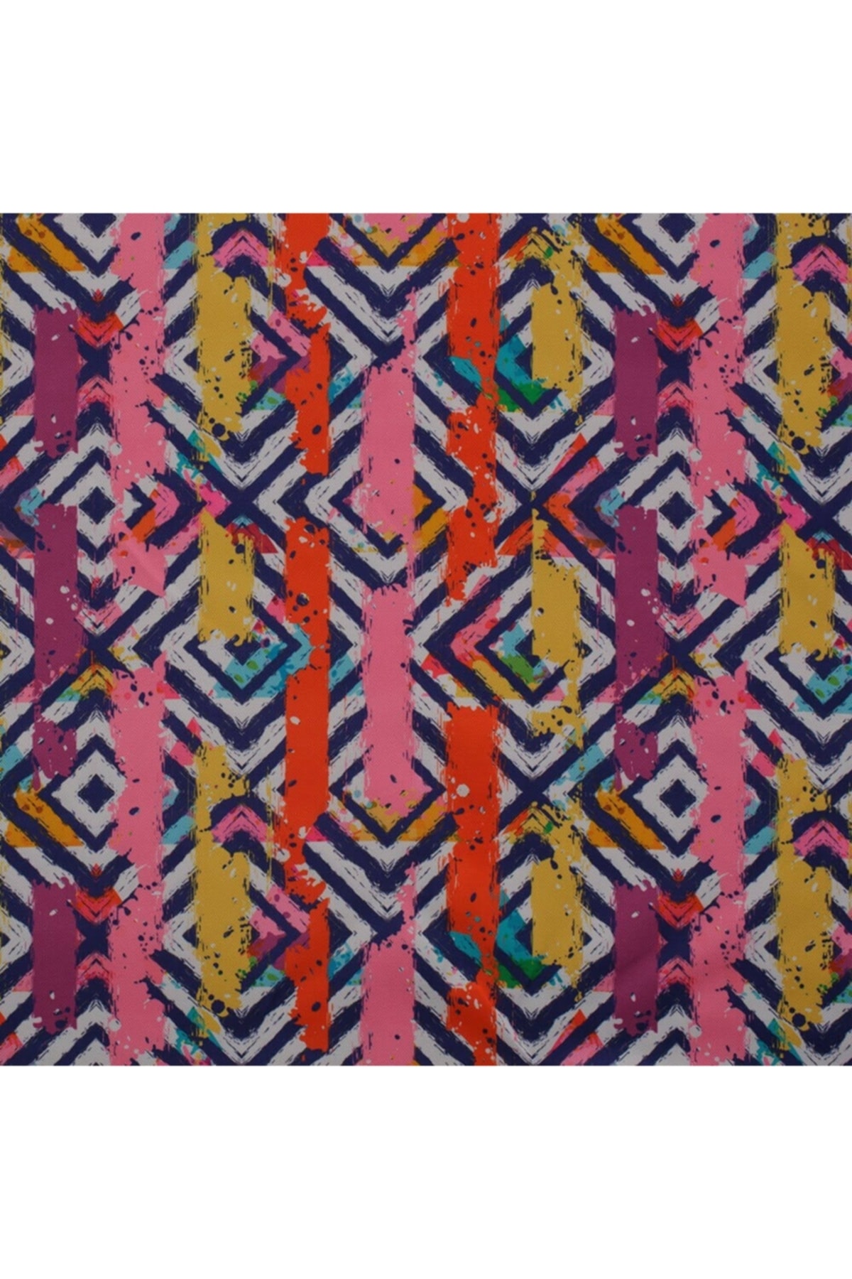 Lacivert Çizgi Zeminli Renkli Subu Boya Desen Dokuma Dijital Baskılı Petek Kumaş