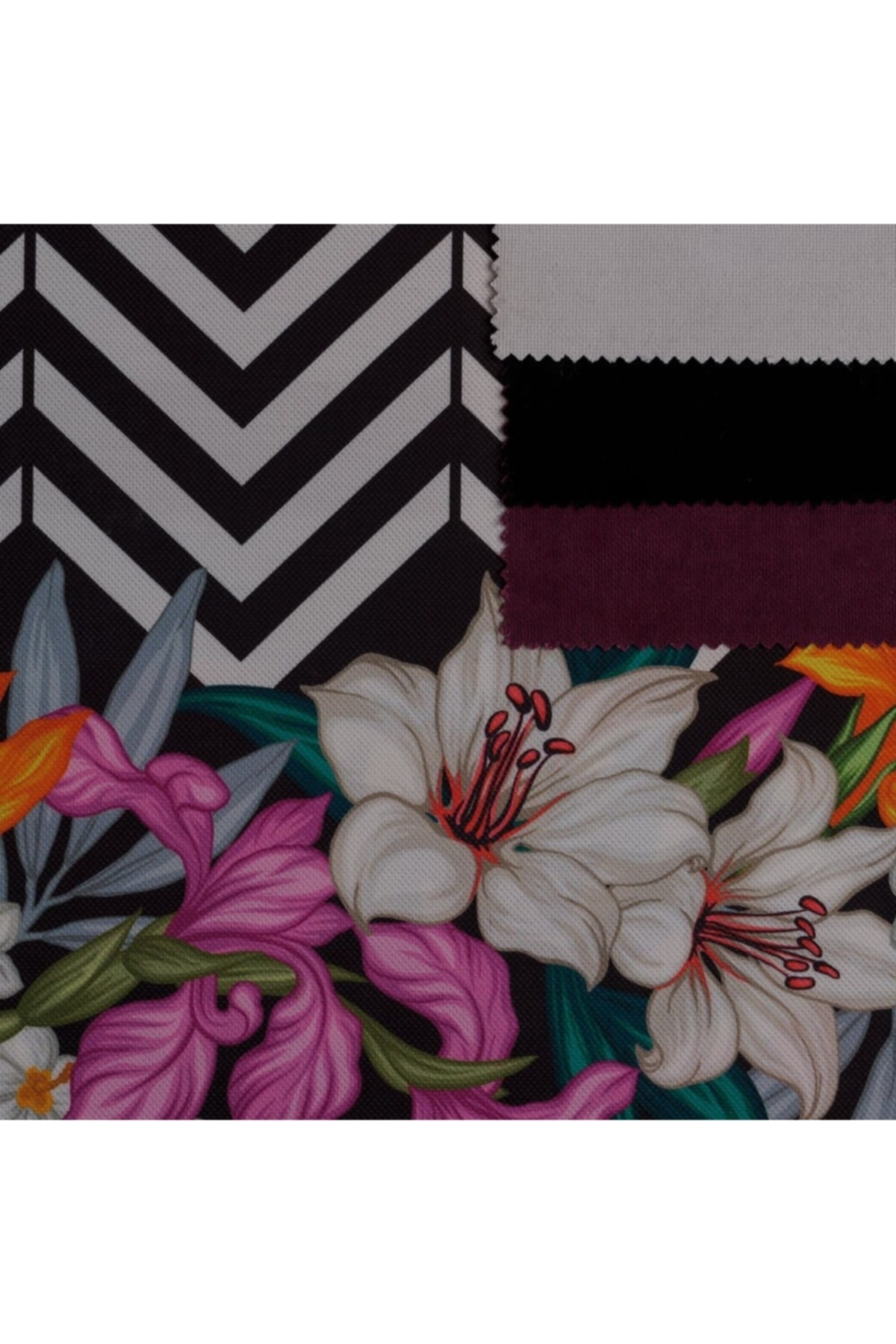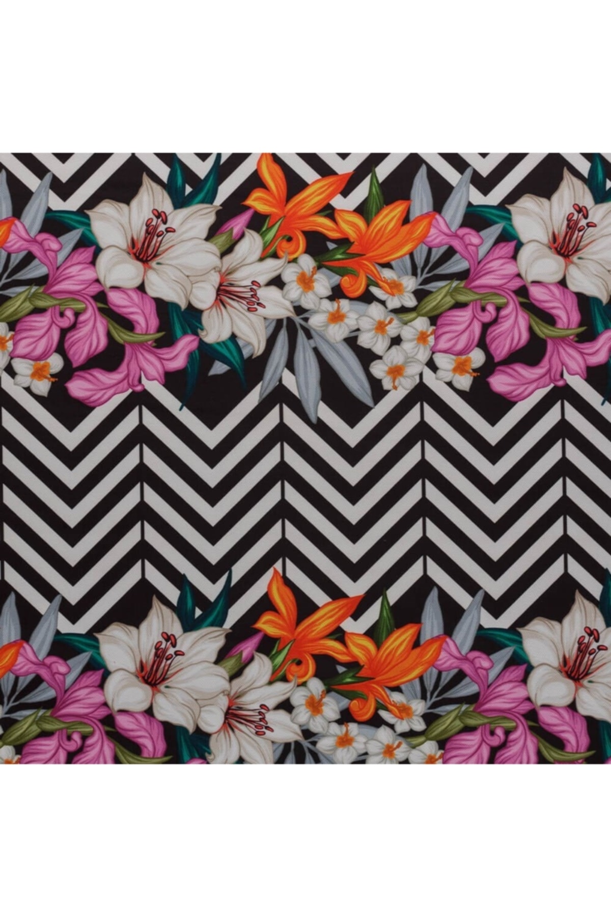 Zigzag Üzeri Turuncu Mürdüm Zambak Desen Dokuma Dijital Baskılı Petek Kumaş