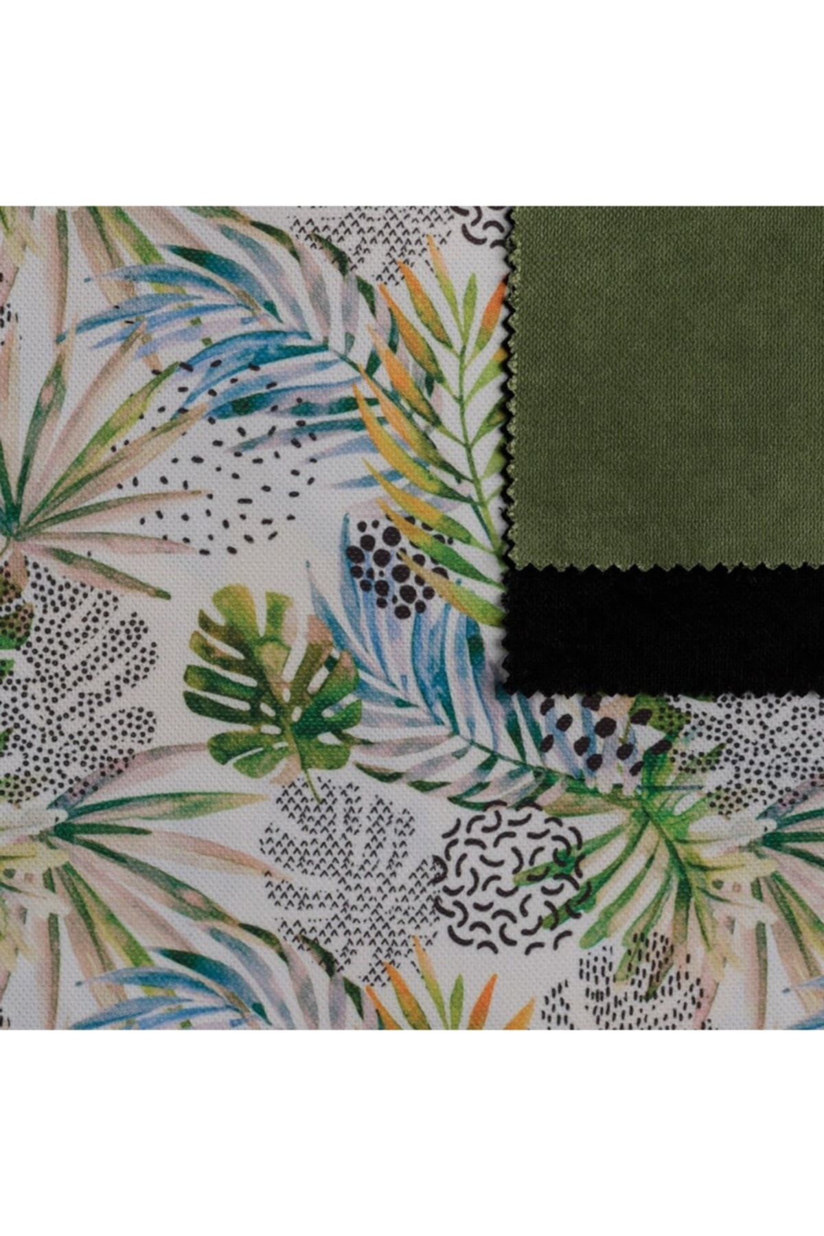 Yeşil Mavi Çiçekli Kozalak Desen Dokuma Dijital Baskılı Petek Kumaş
