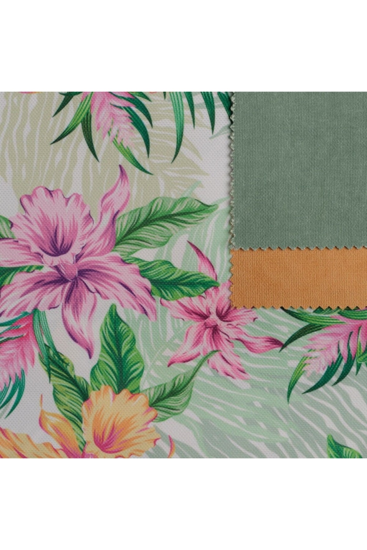 Mint Zemin Efektli Modern Yeşil Pembe Renkli Zambak Desen Dokuma Dijital Baskılı Petek Kumaş