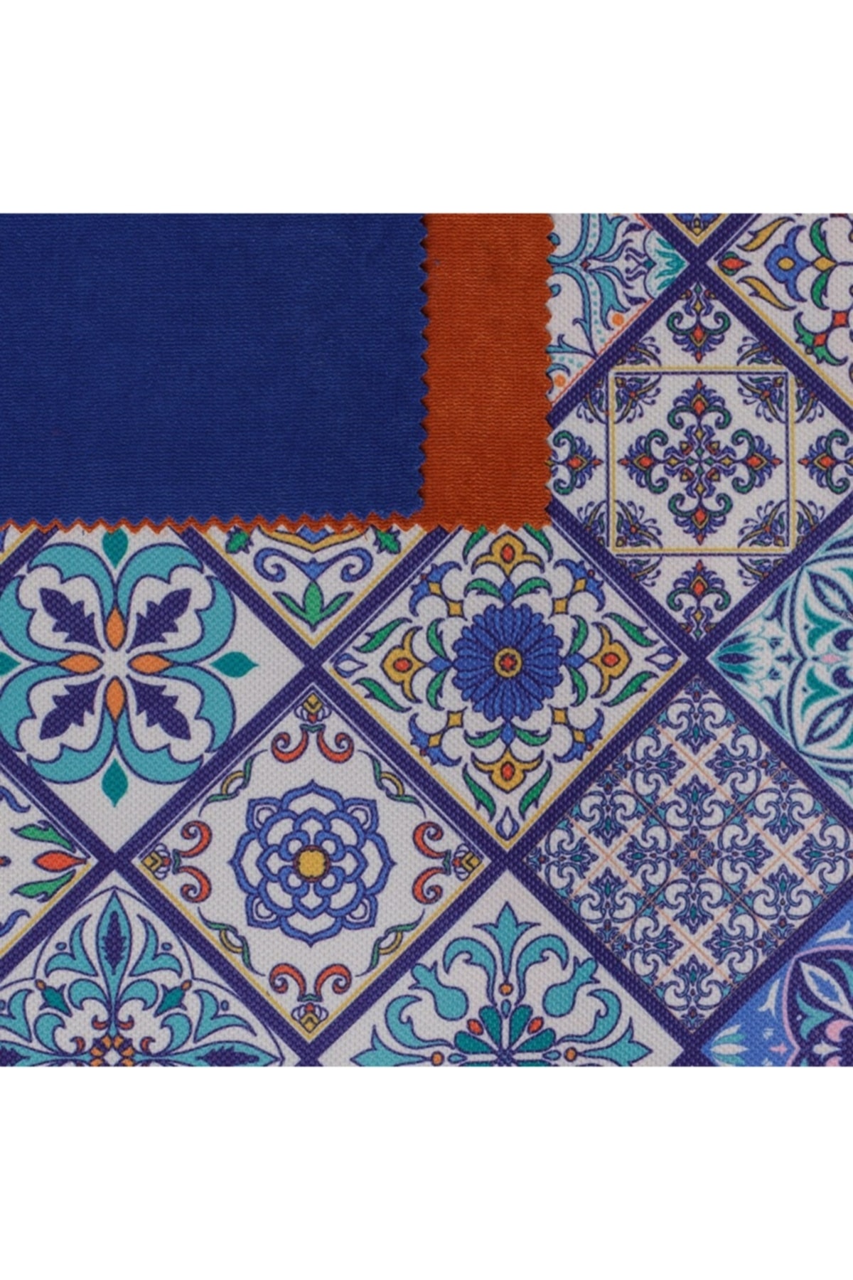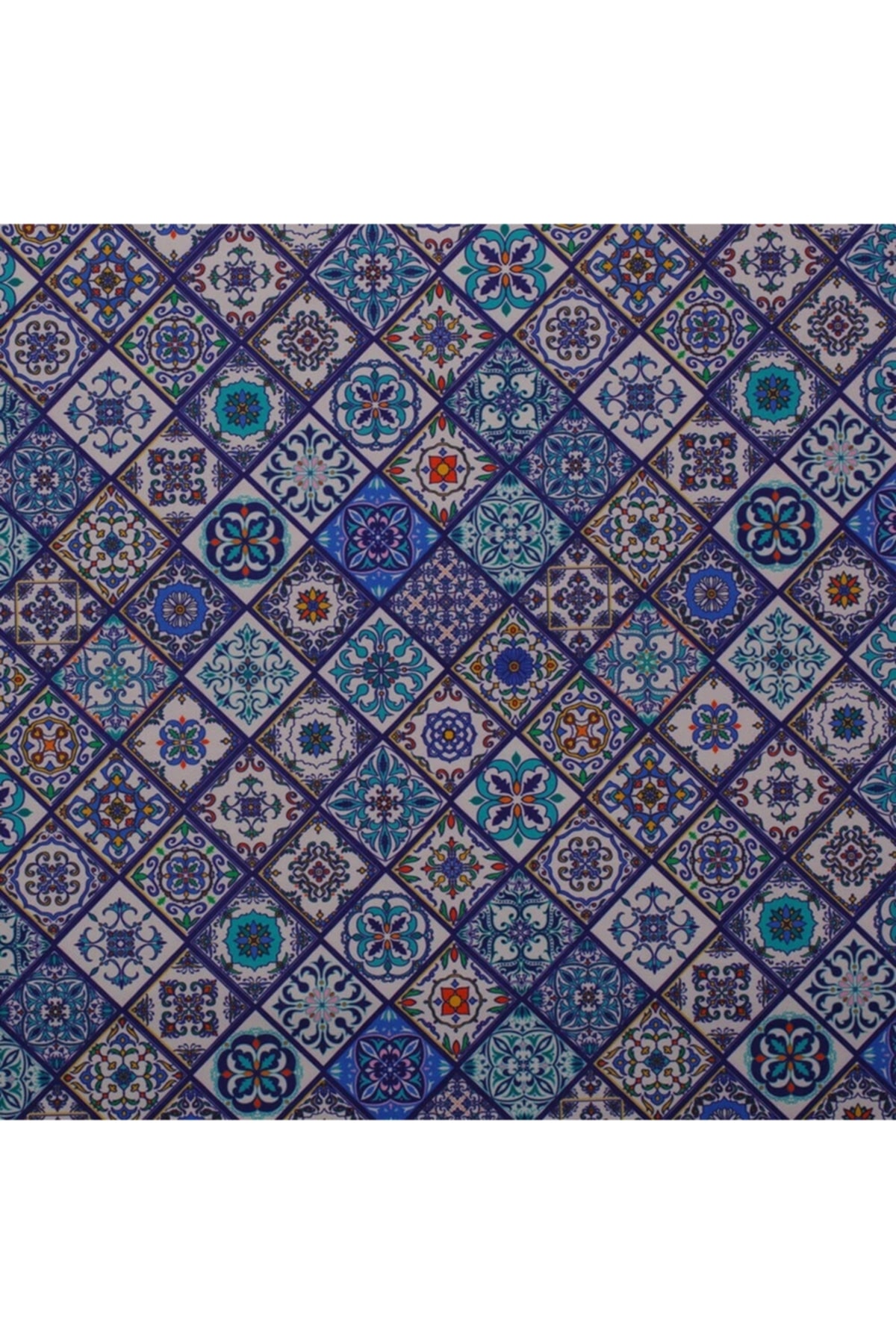 Modern Mavi Renk Seramik Desen Dokuma Dijital Baskılı Petek Kumaş