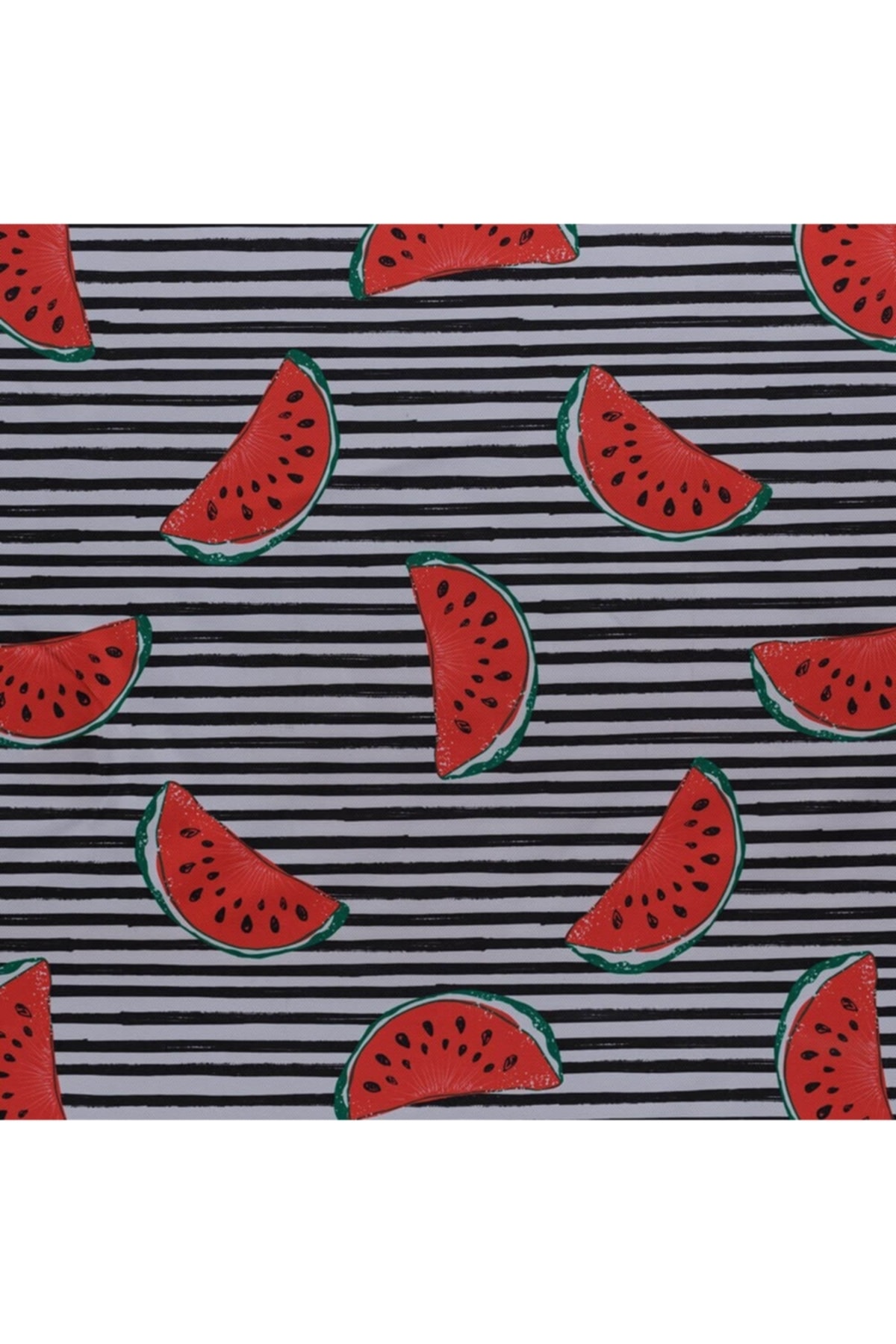 Siyah Beyaz Zemin Üzerine Karpuz Dilimi Desen Dokuma Dijital Baskılı Petek Kumaş