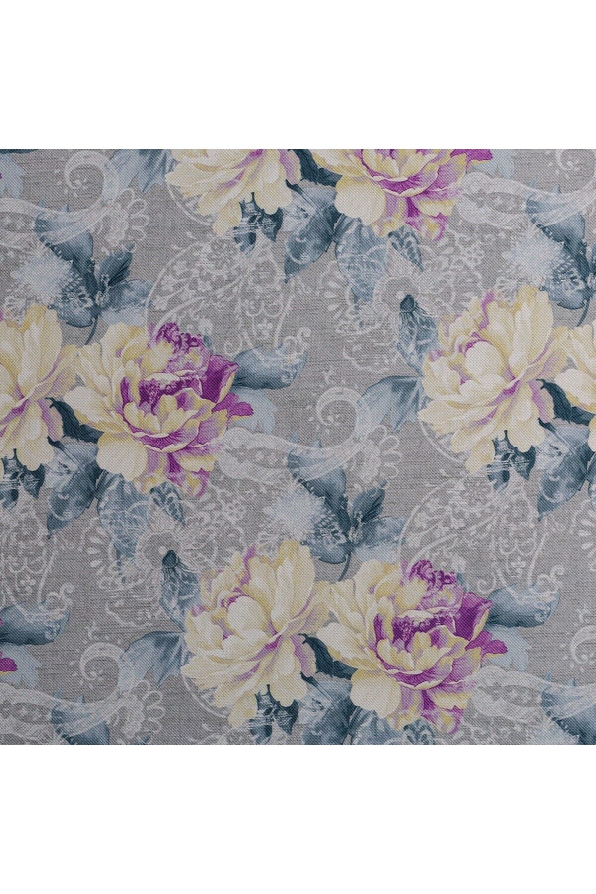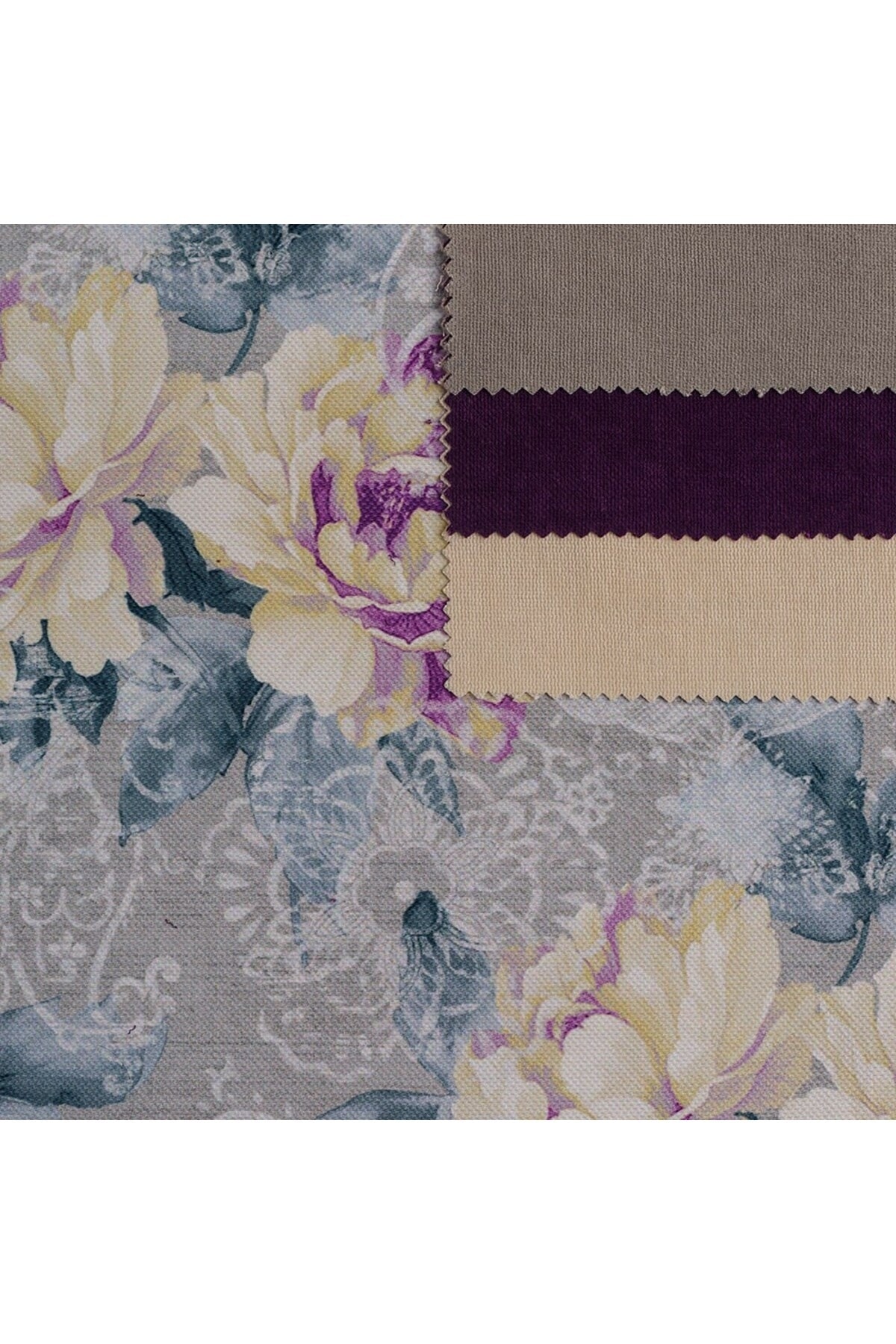 Gri Zeminli Mor Antrasit Renkli Sarmaşıkdesenli Dokuma Dijital Baskılı Petek Kumaş