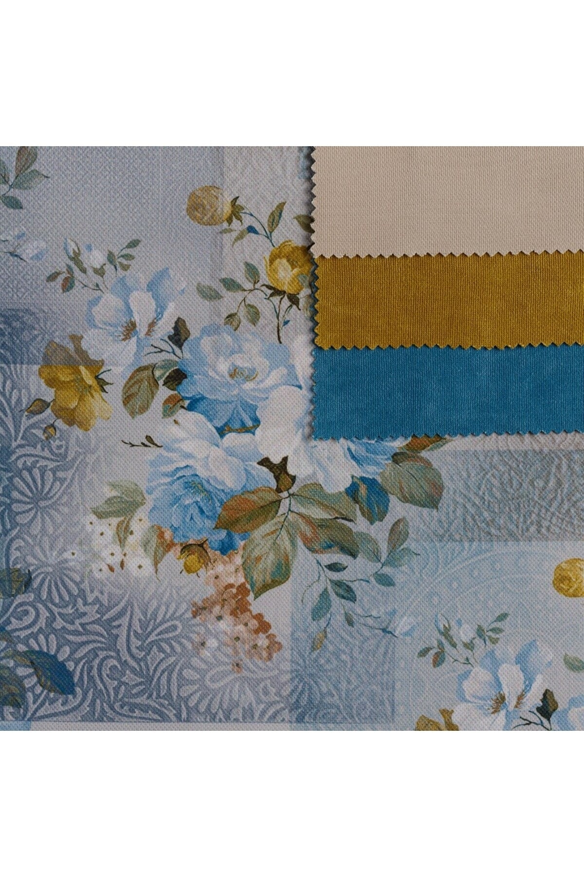 Mavi Hardal Renkli Zemin Motifli Güller Dokuma Dijital Baskılı Petek Kumaş