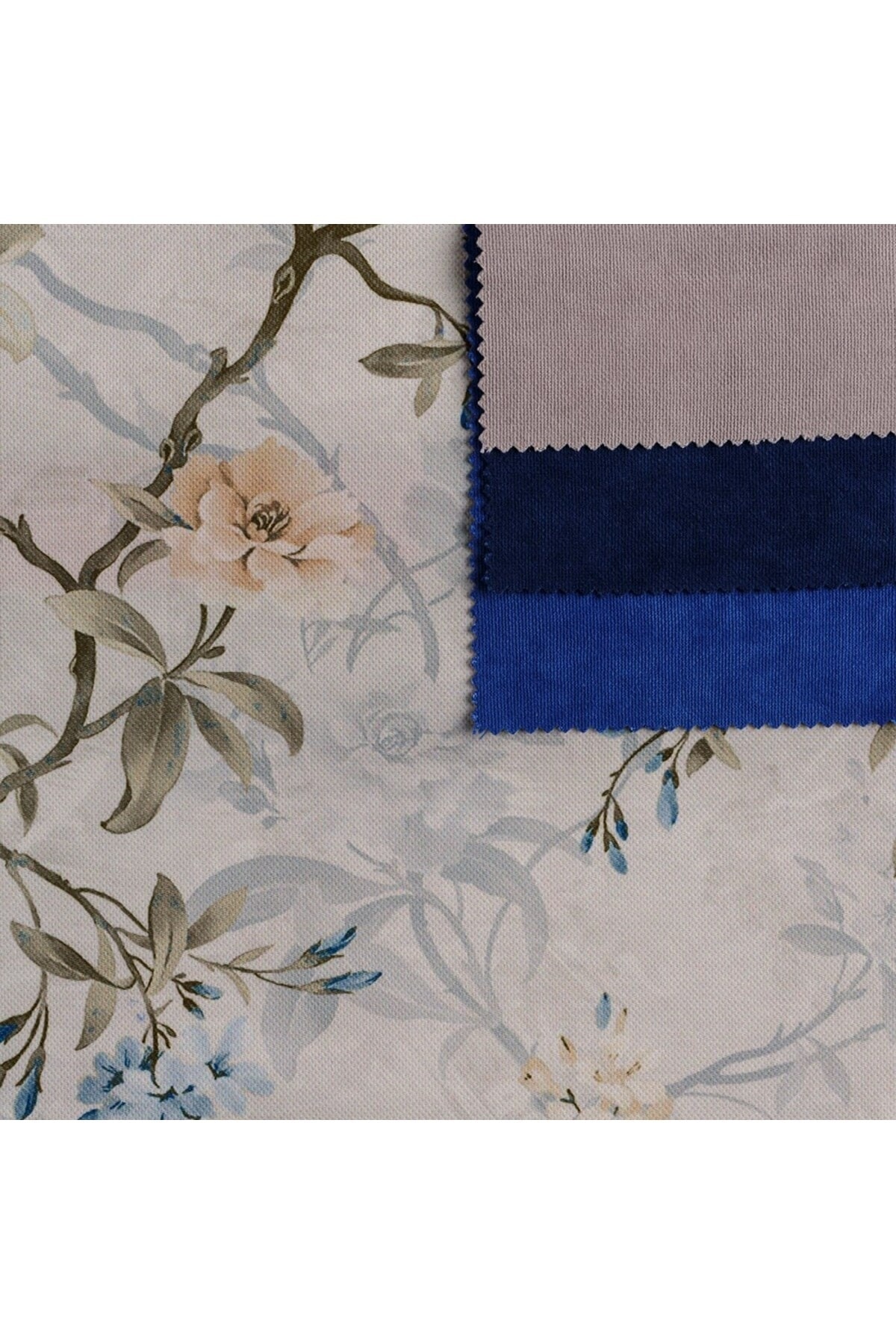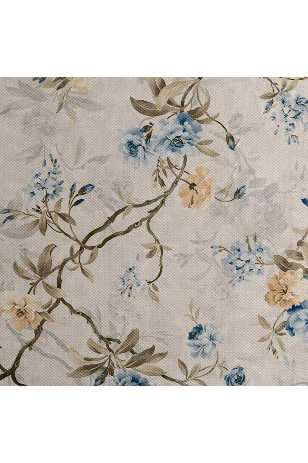 Gri Zemin Üzerine Baskılı Mavi Tarçın Renkli Sarmaşık Çiçekli Dokuma Dijital Baskılı Petek Kumaş