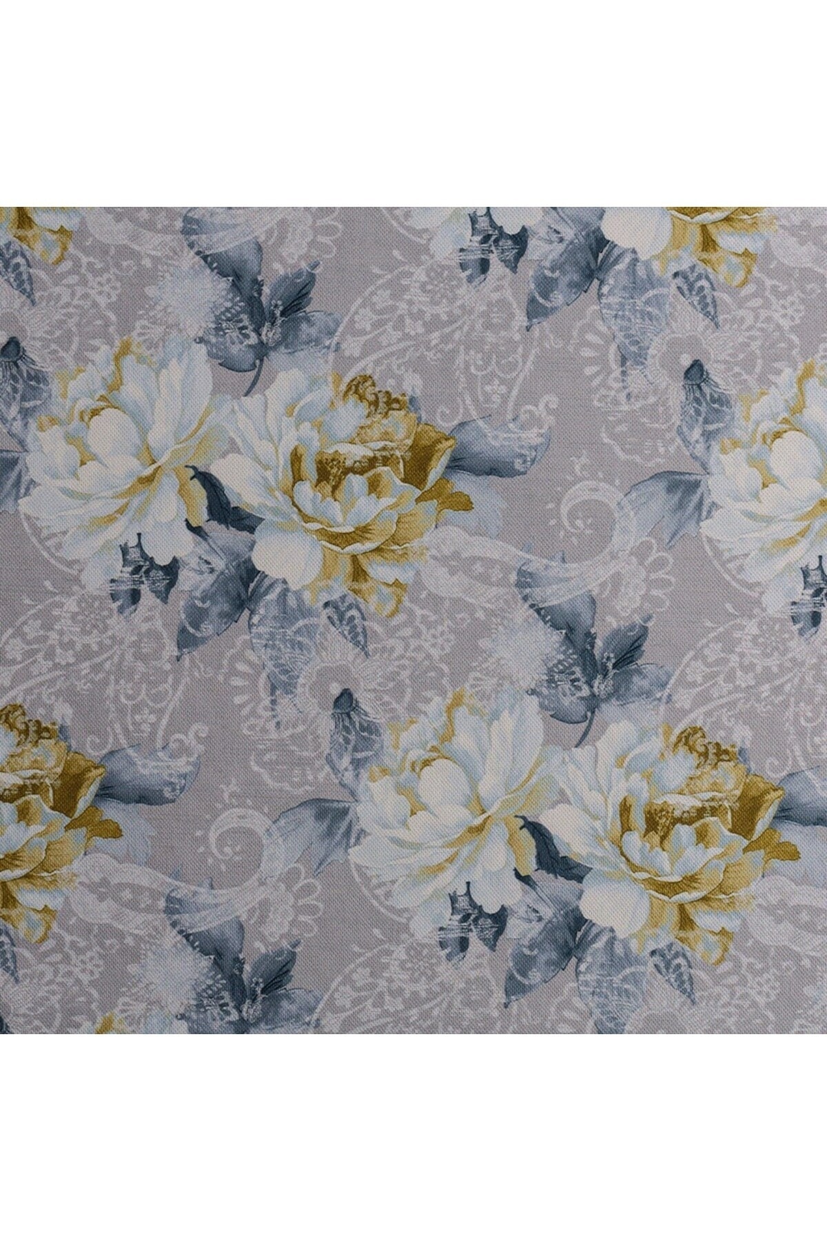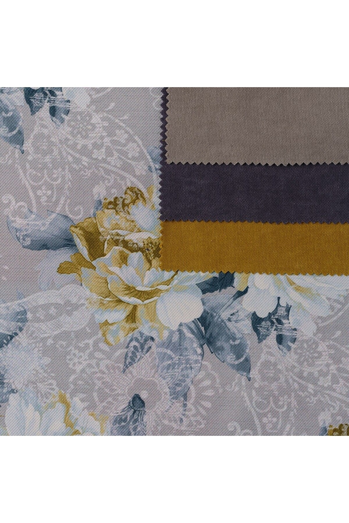 Gri Zeminli Hardal Açık Krem Renkli Sarmaşık Desenli Dokuma Dijital Baskılı Petek Kumaş