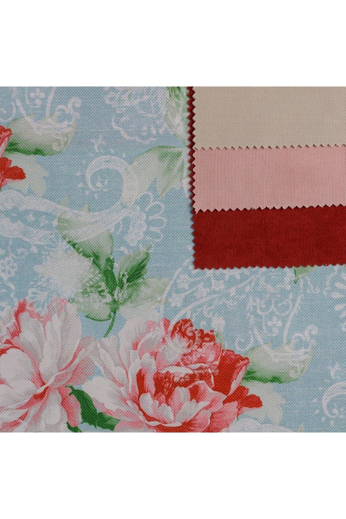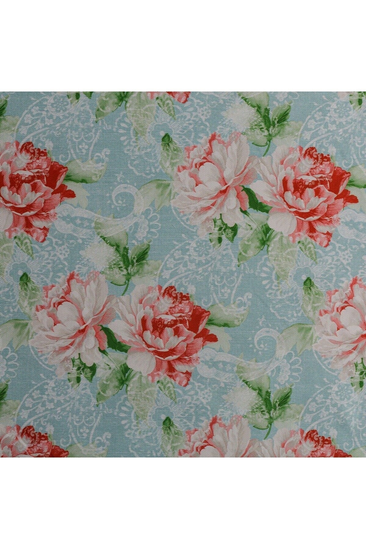 Mint Zeminli Kiremit Yeşil Renkli Sarmaşık Gül Desenli Dokuma Dijital Baskılı Petek Kumaş