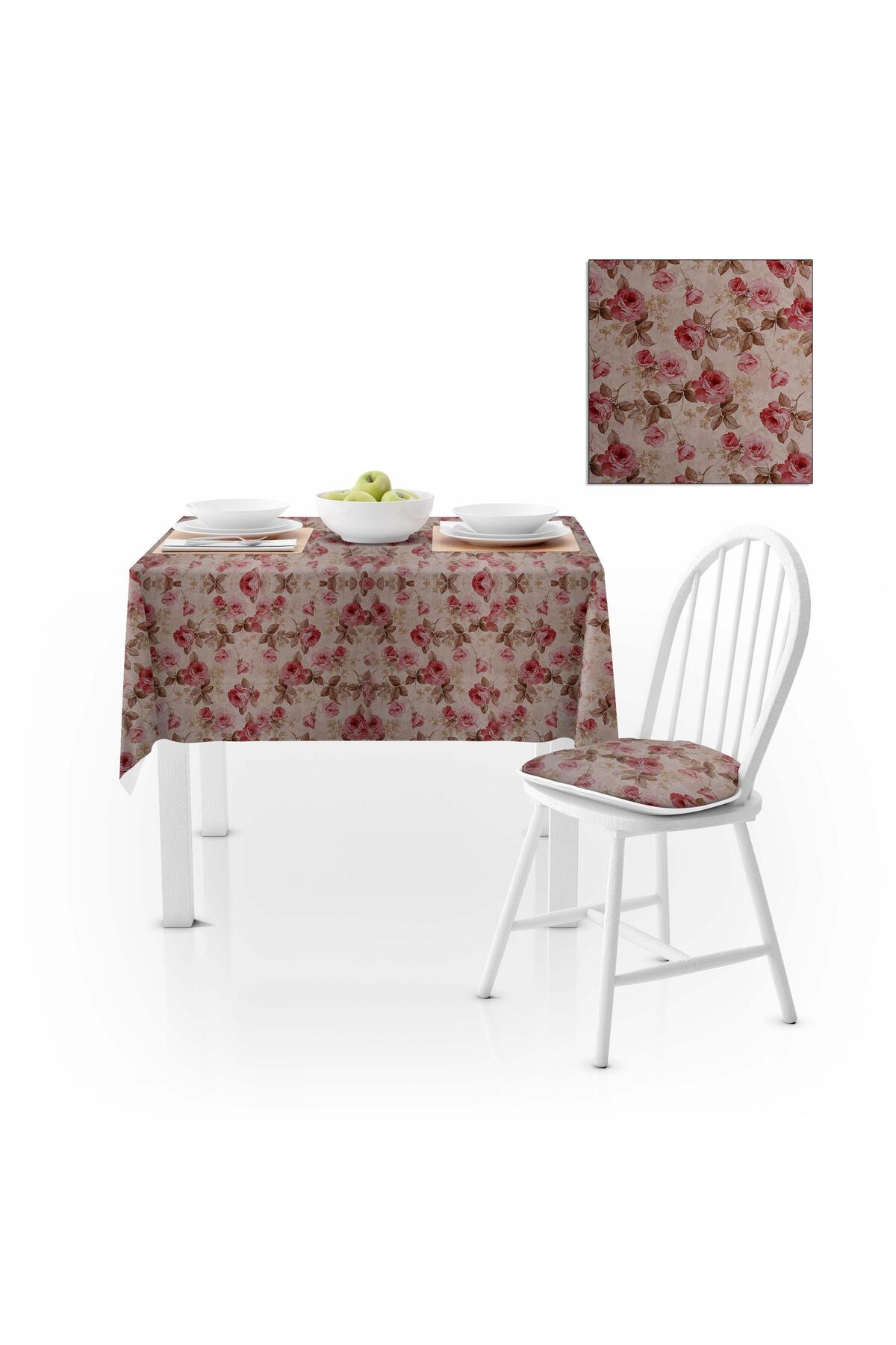 Gül Desenli Vizon Yapraklı Pembe Dijital Baskılı Süet Dokuma Runner Masa Örtüsü 140x180