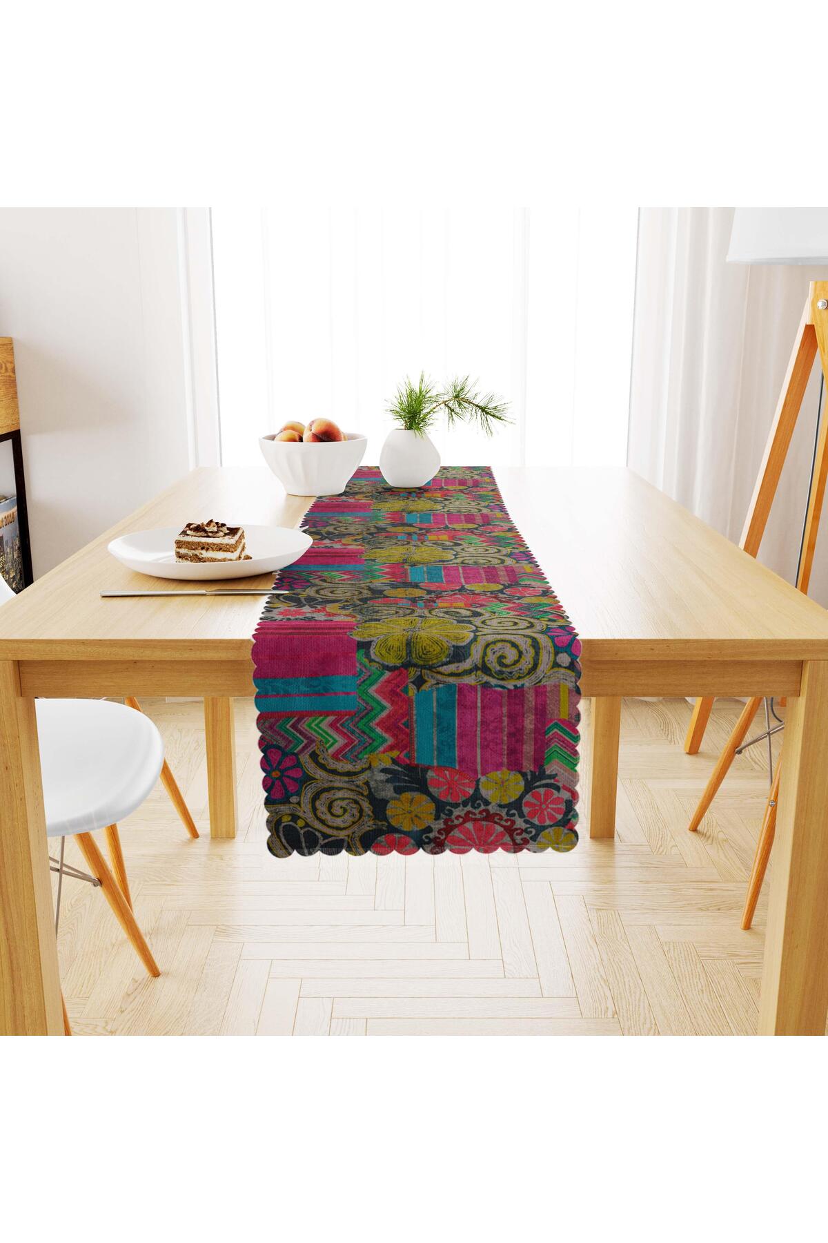 Geometrik Desenli Renkli Fuşya Sarı Dijital Baskılı Süet Dokuma Runner 40x140
