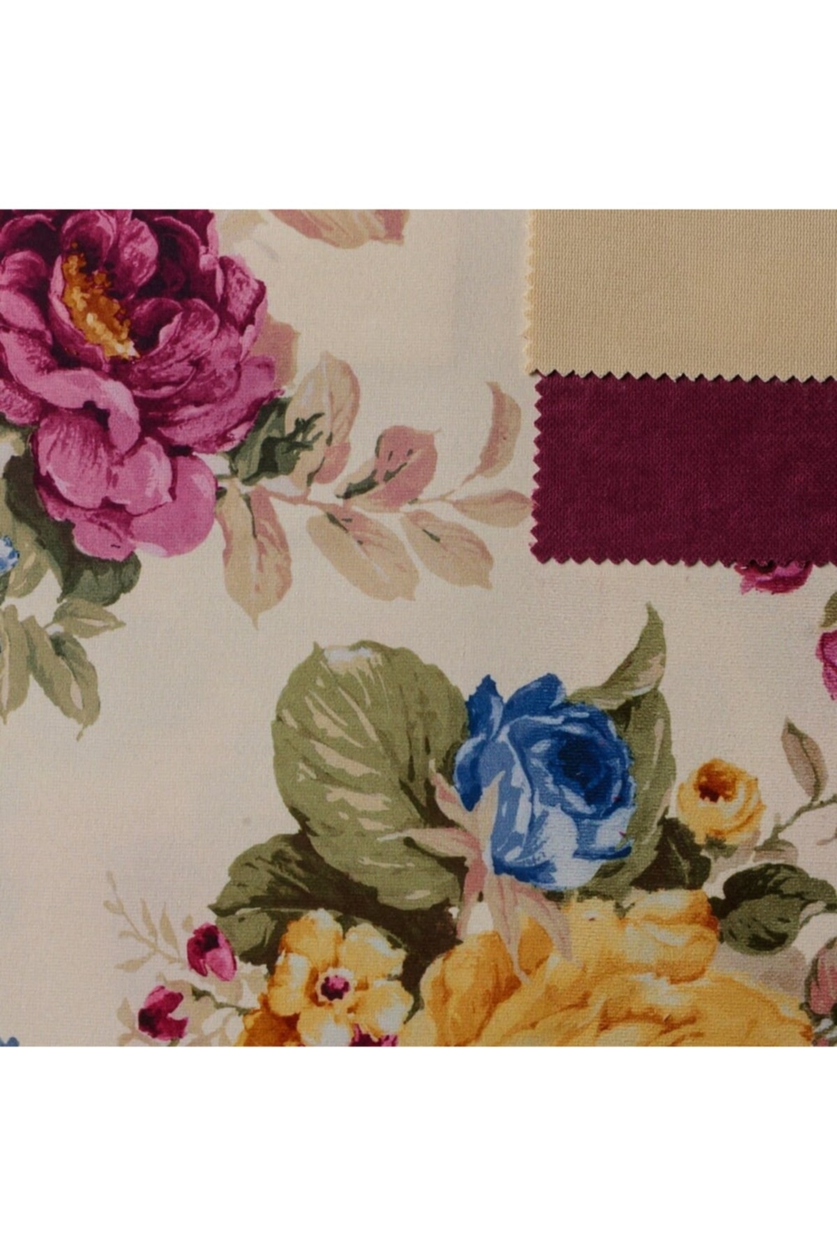 Sarı Mürdüm Renkli Büyük Güller Dijital Baskılı Süet Kumaş