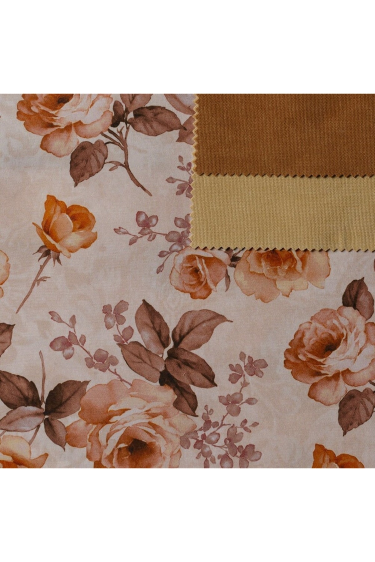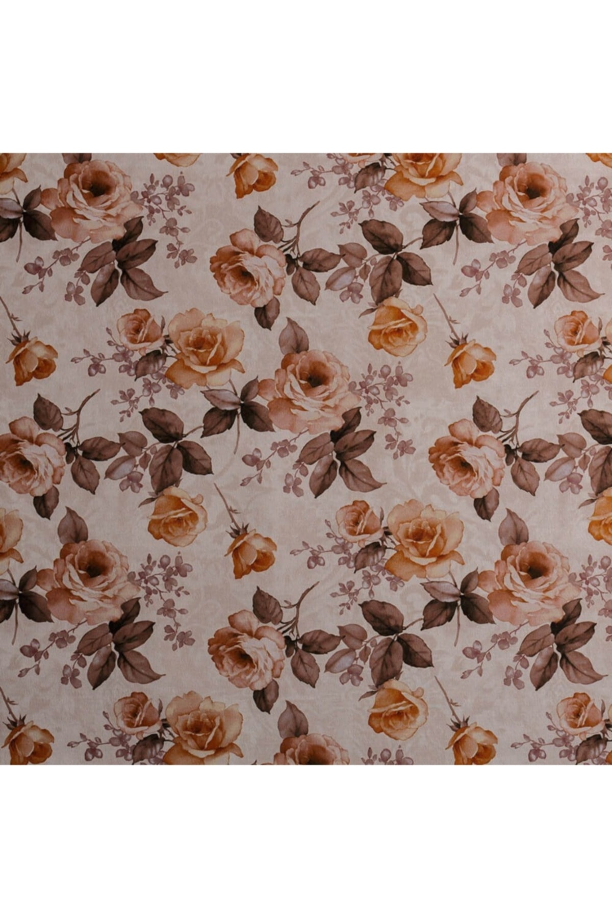 Krem Zemin Üzerine Baskılı Çıkolata Taba Renkli Çiçekli Dijital Baskılı Süet Kumaş