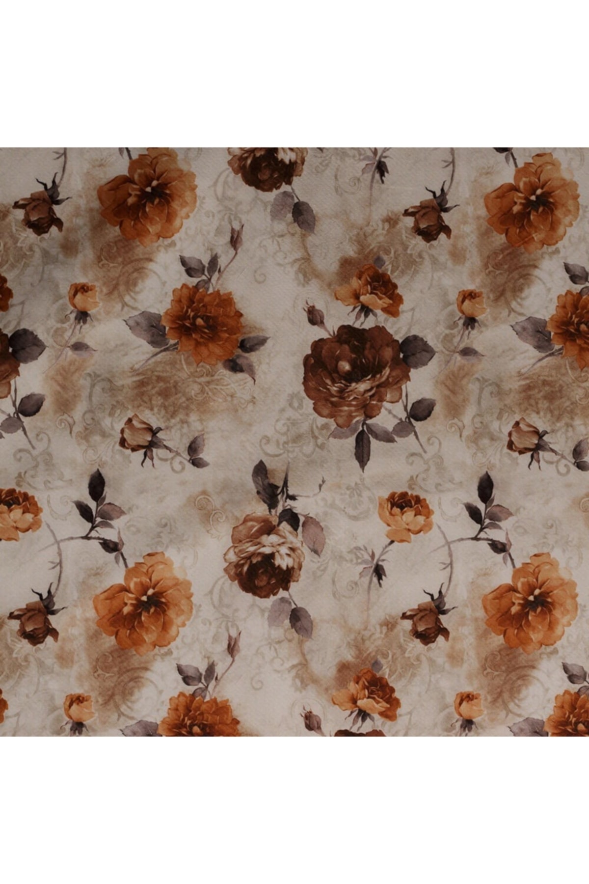 Modern Kestane Renkli Çiçekli Dijital Baskılı Süet Kumaş