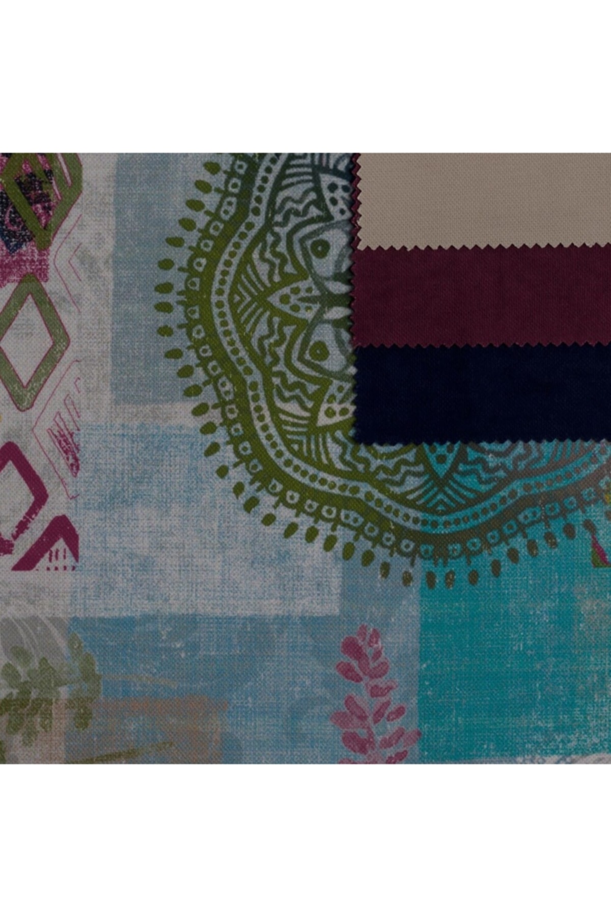Turkuaz Pembe Motifli Pachwork Desen Dokuma Dijital Baskılı Petek Kumaş