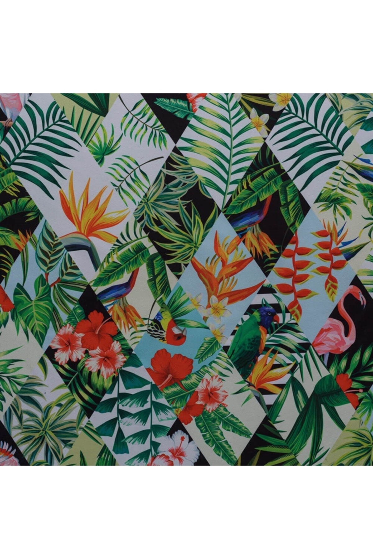 Modern Baklava Dilimli Flamingo Papağan Desen Dokuma Dijital Baskılı Petek Kumaş