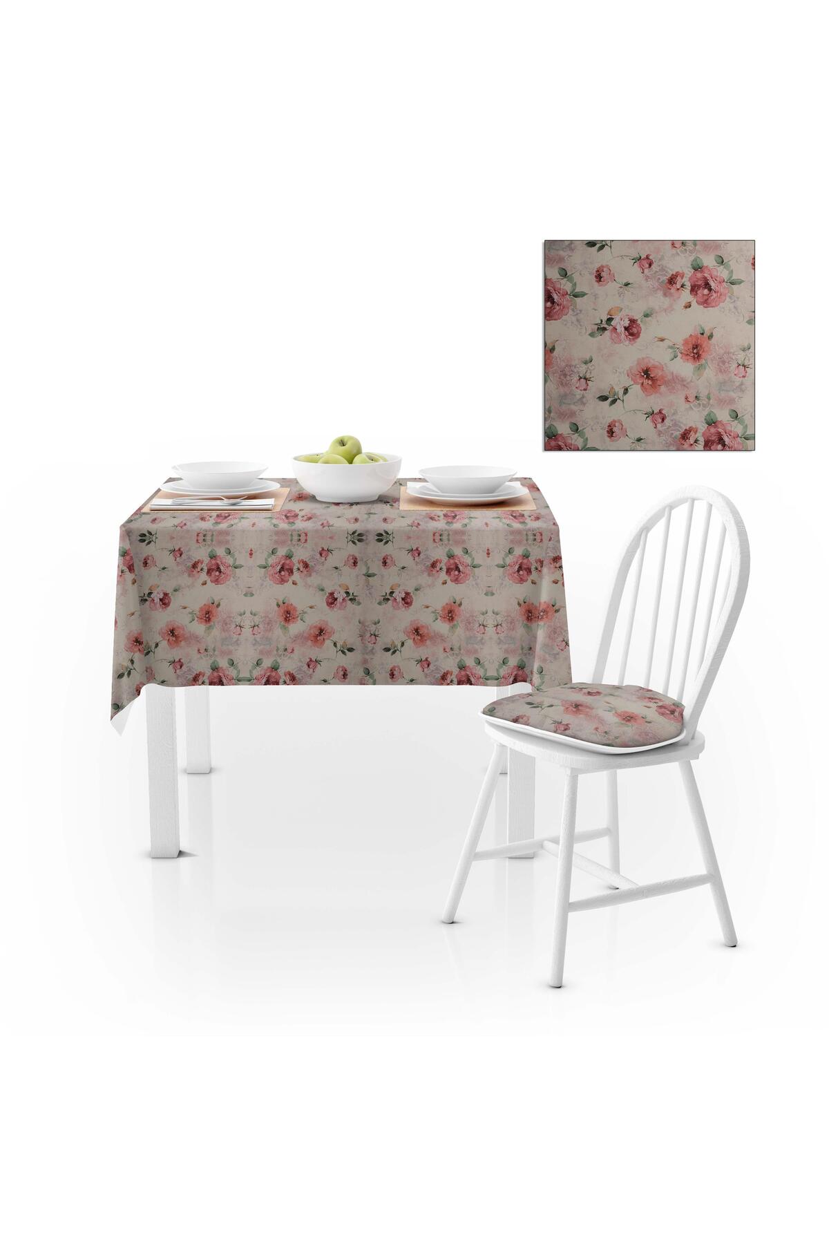 Modern Desenli Beyaz Zemin Gül Kurusu Krem Dijital Baskılı Süet Dokuma Masa Örtüsü 140x220