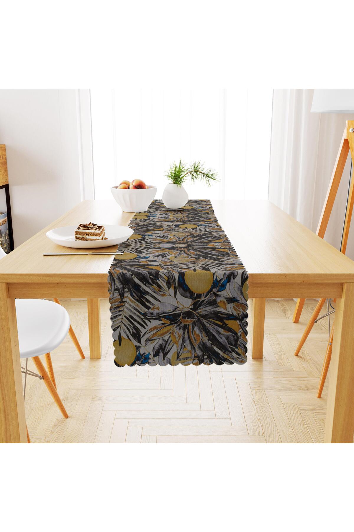 Limon Desenli Çiçekli Beyaz Zemin Dijital Baskılı Petek Dokuma Runner 40x140